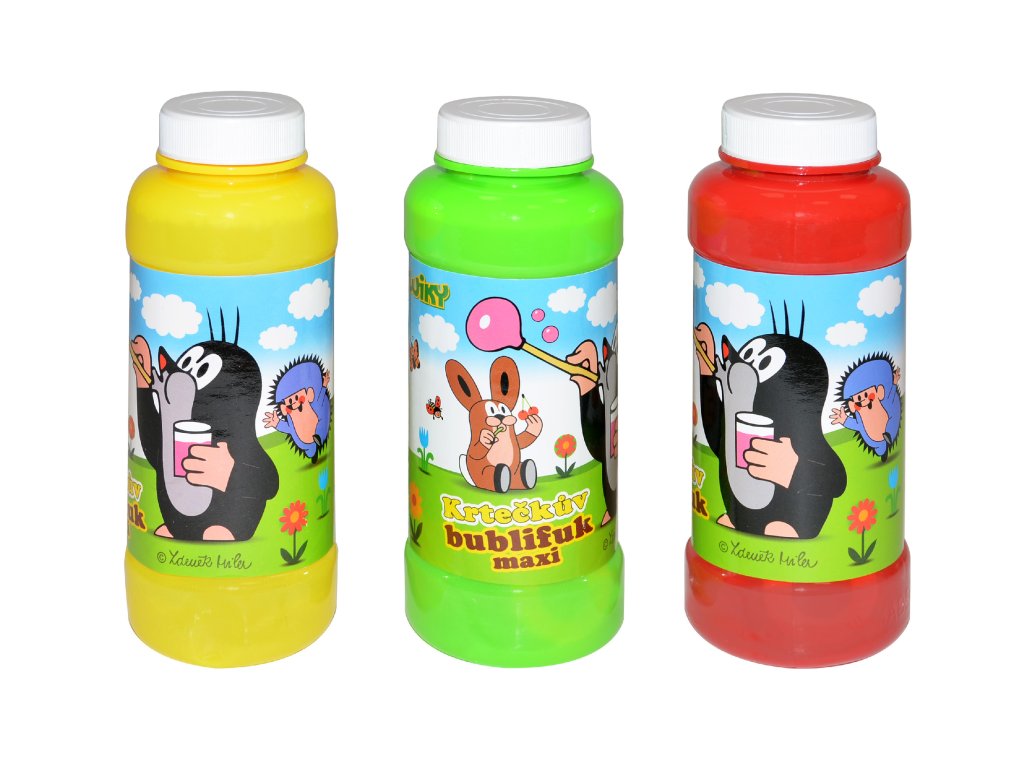 Bublifuk maxi krtek 240 ml. 6 ks display box. 3 varianty - zelená, žlutá, červená.