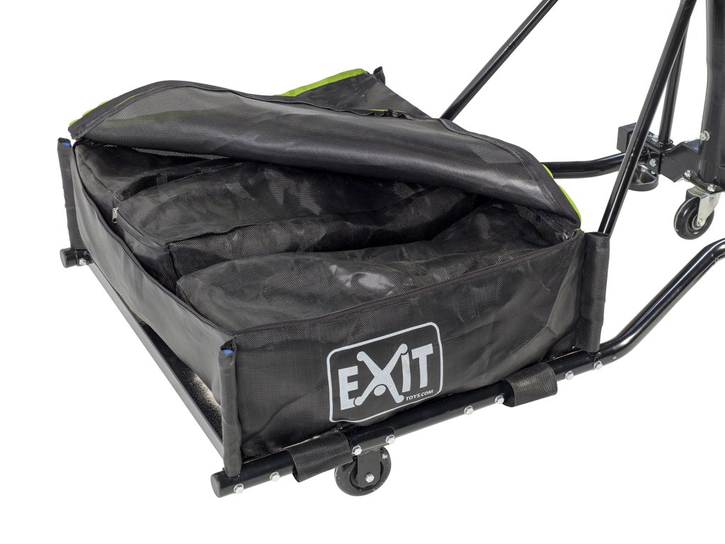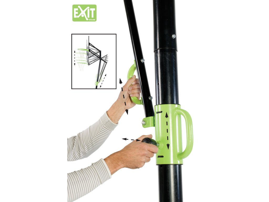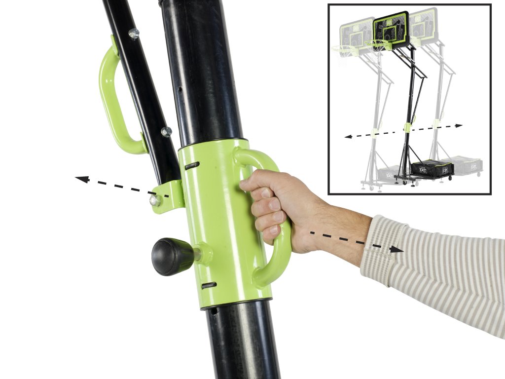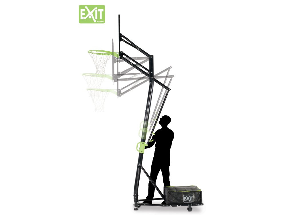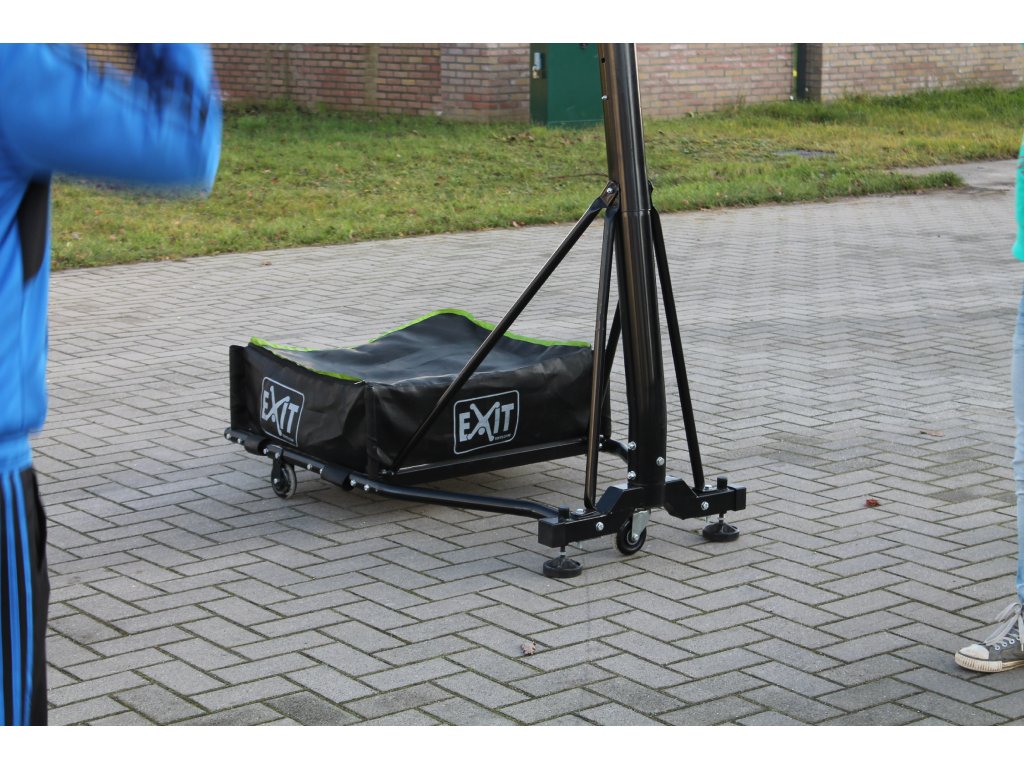 Basketbalový koš Exit Galaxy Black přenosný je vybaven unikátním systémem obsahujícím protizávaží. Pokud budete používat běžné pohybovací systémy, u který musíte často naklonit celý koš před tím než koš posunete, což není snadné a je to také nebezpečné, hlavně pro děti, u systému Galaxy je rám vybaven třemi kolečky a můžete tak se systémem snadno a rychle pohybovat bes naklápění celého systému. Otočné kolečko na přední straně umožňuje snadné řízení, které je ještě podpořeno čelní rukojetí pro velmi jednoduchou manipulaci i pro děti.