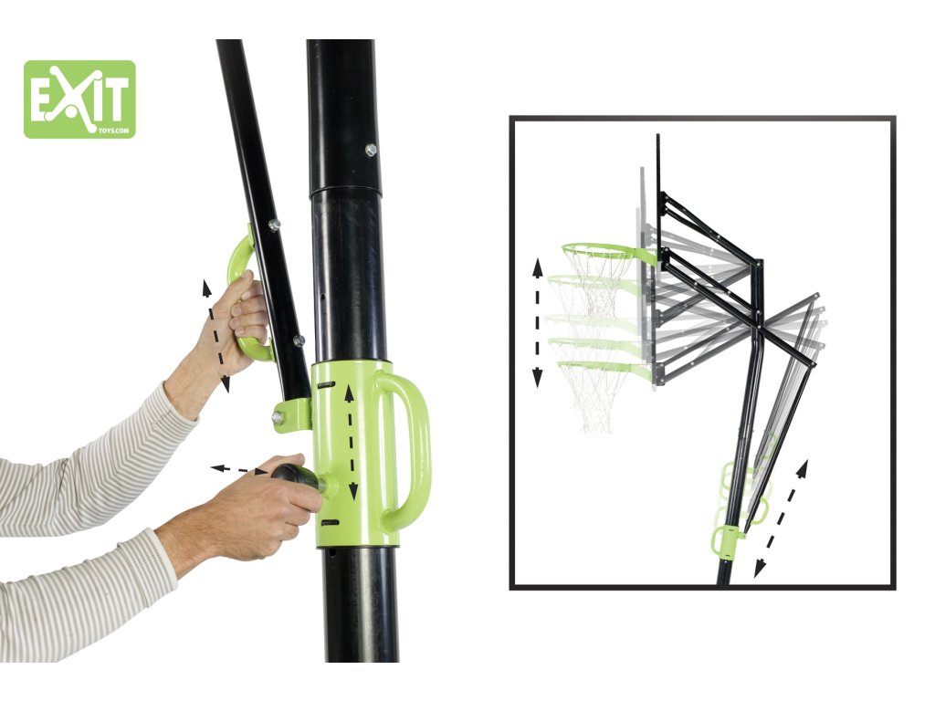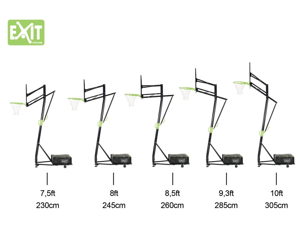 Koš má 5 výškových nastavení 230cm, 245cm, 260cm, 285cm, 305cm, vámi zvolenou výšku nastavíte velmi lehce během pár sekund.