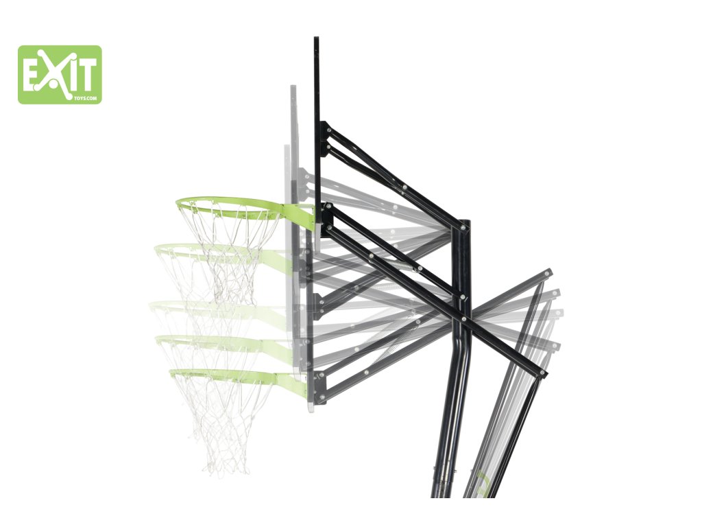 Koš má 5 výškových nastavení 230cm, 245cm, 260cm, 285cm, 305cm, vámi zvolenou výšku nastavíte velmi lehce během pár sekund.