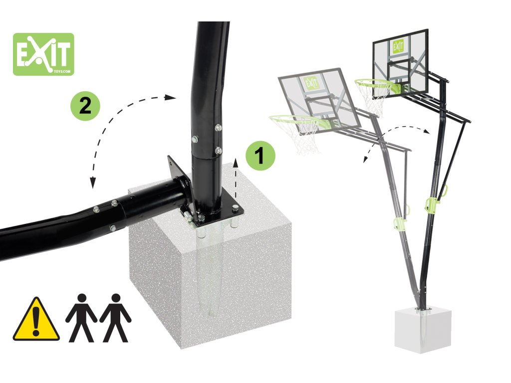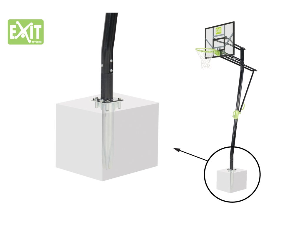Basketbalový koš do země je nutno instalovat do betonu, kam se zabetonuje kotva, na kterou ja koš nasazen.