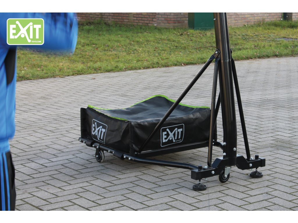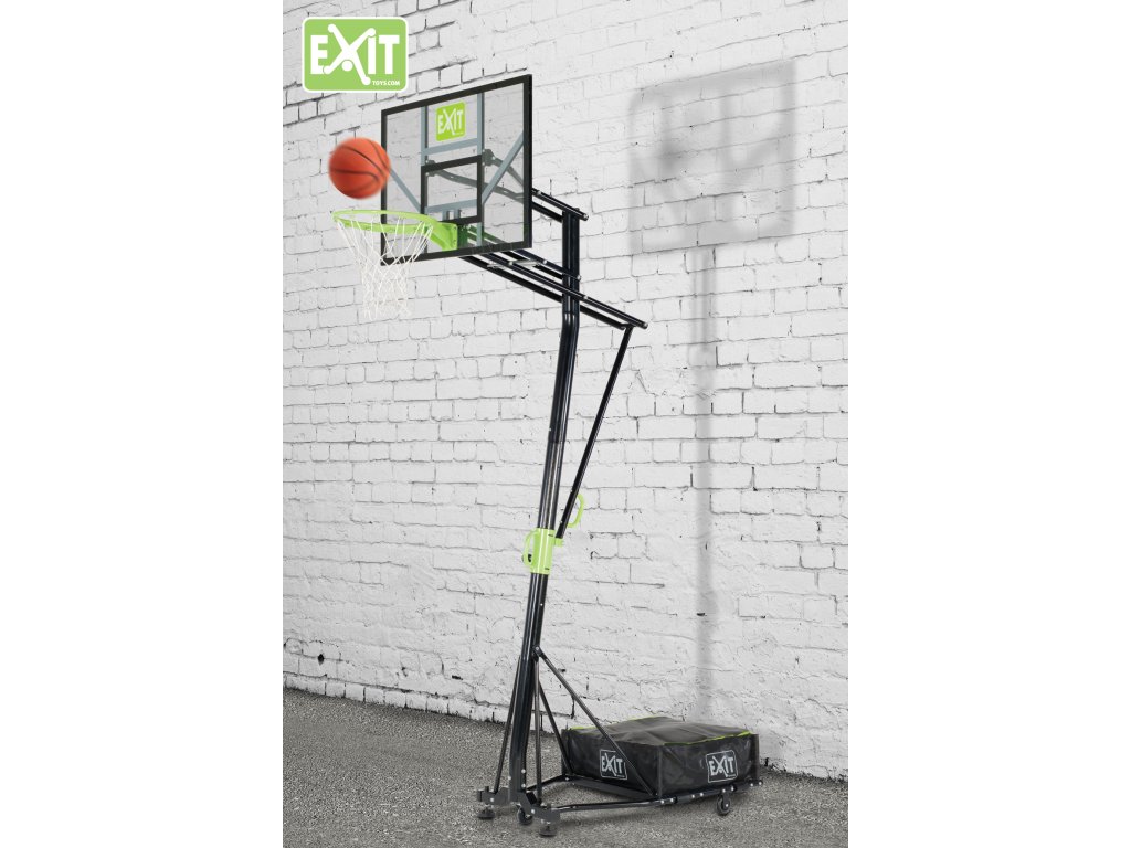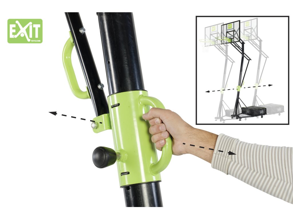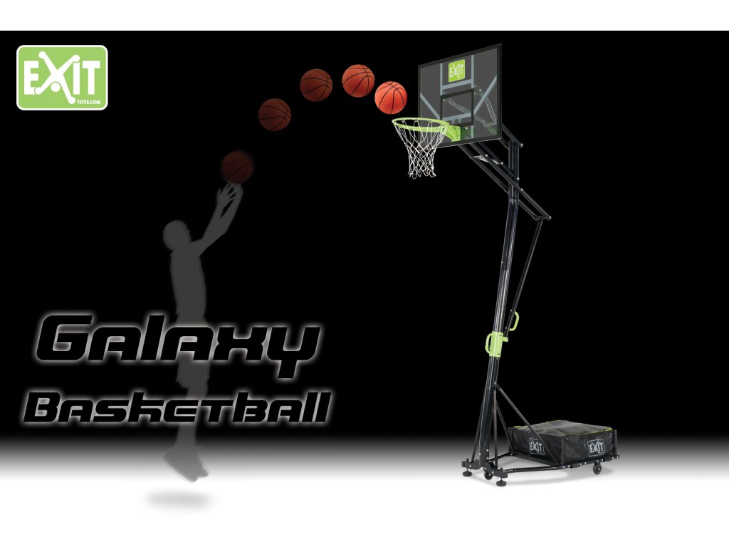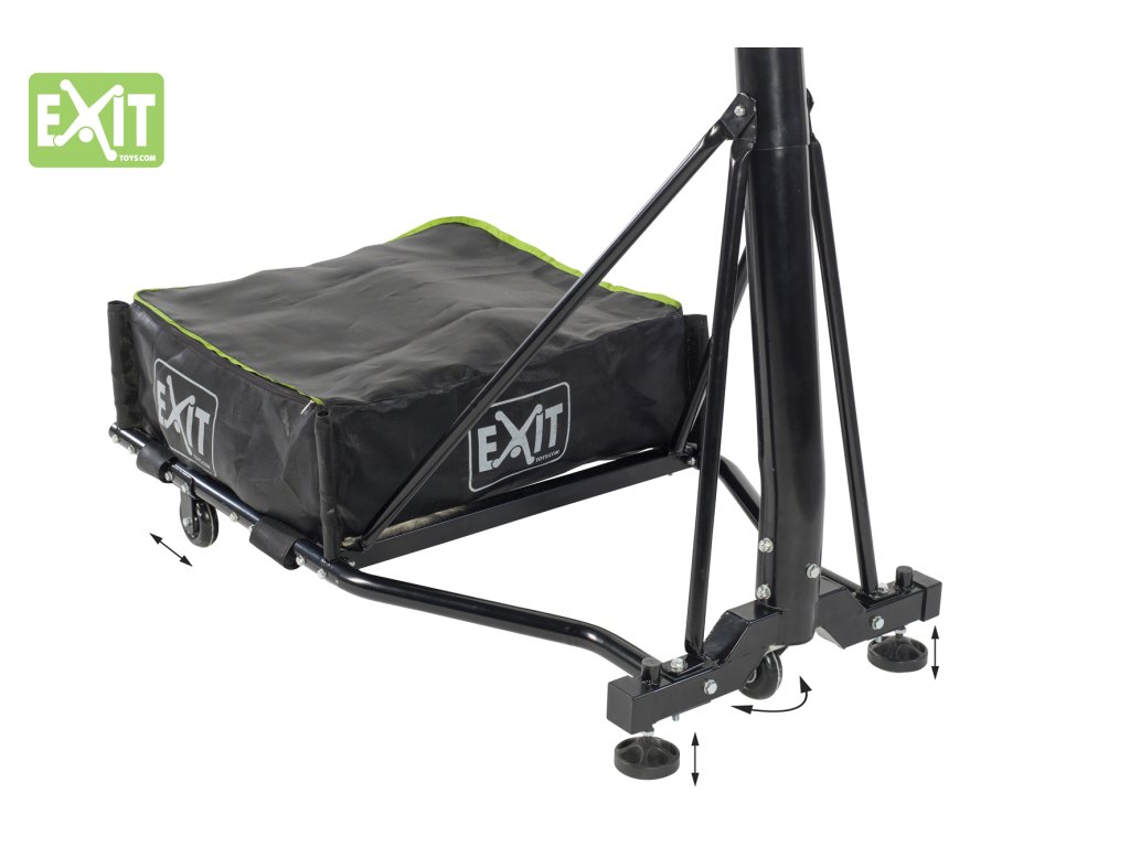 Basketbalový koš Exit Galaxy přenosný je vybaven unikátním systémem obsahujícím protizávaží. Pokud budete používat běžné pohybovací systémy, u který musíte často naklonit celý koš před tím než koš posunete, což není snadné a je to také nebezpečné, hlavně pro děti, u systému Galaxy je rám vybaven třemi kolečky a můžete tak se systémem snadno a rychle pohybovat bes naklápění celého systému. Otočné kolečko na přední straně umožňuje snadné řízení, které je ještě podpořeno čelní rukojetí pro velmi jednoduchou manipulaci i pro děti.