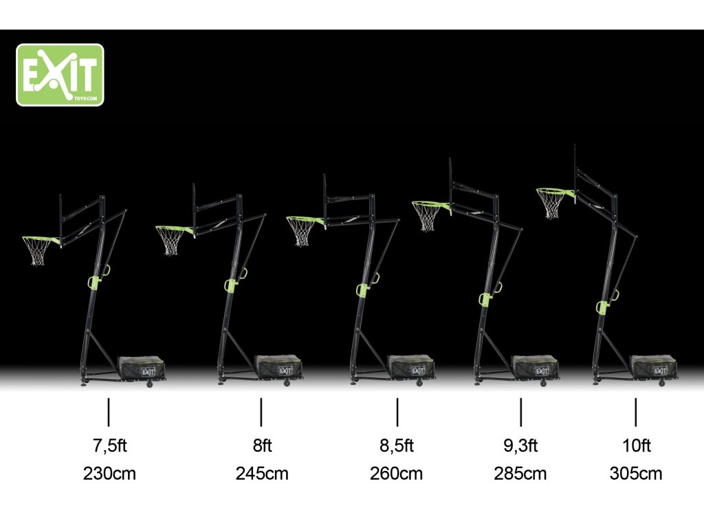 Koš má 5 výškových nastavení 230cm, 245cm, 260cm, 285cm, 305cm, vámi zvolenou výšku nastavíte velmi lehce během pár sekund.
