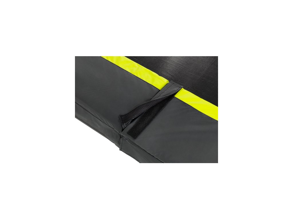 Trampolíny mají rám pokrytý černou práškovou barvou a do stejného designu je laděn i ochranný límec, který má žluté doplňky.