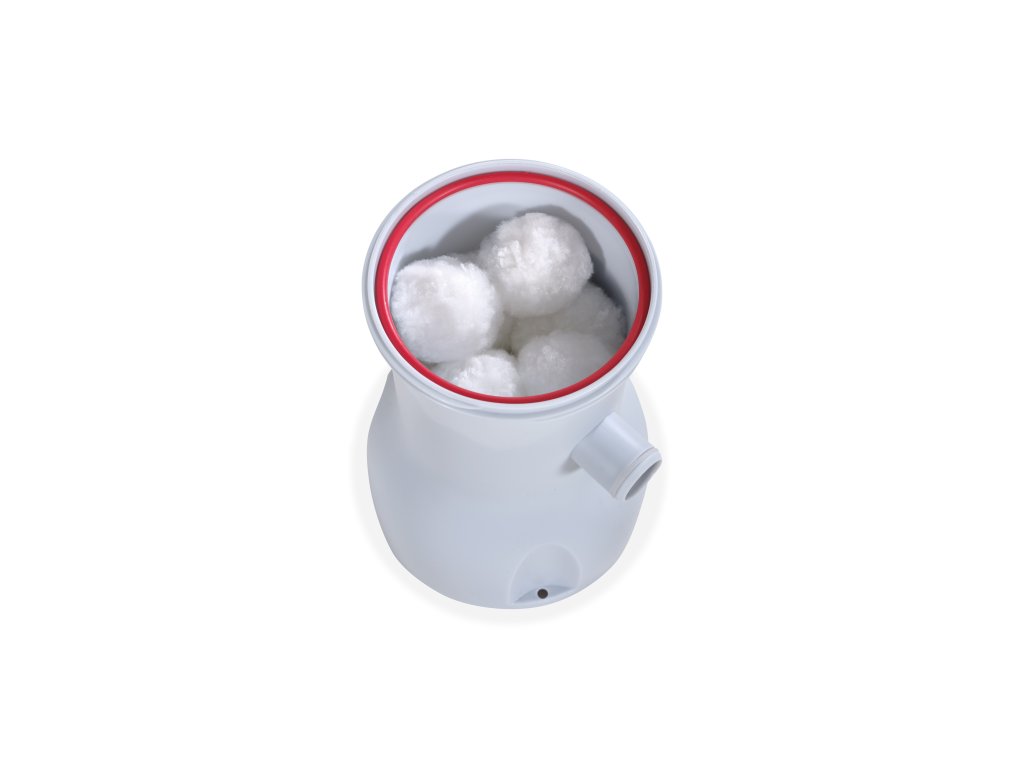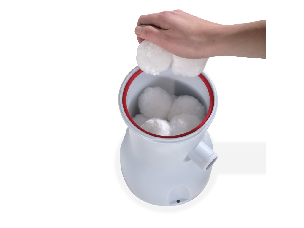 Vata obsahuje velmi jemná vlákna, která dokáží zachytit i ty nejmenší částice nečistot, jako je písek a řasy. Kromě toho jsou kuličky také omyvatelné a lze je použít více sezón. Doporučujeme po sezóně ručně vyprat bez chemických přípravků a použít další sezónu. Během sezóny není nutné kuličky prát, podle zanešení.