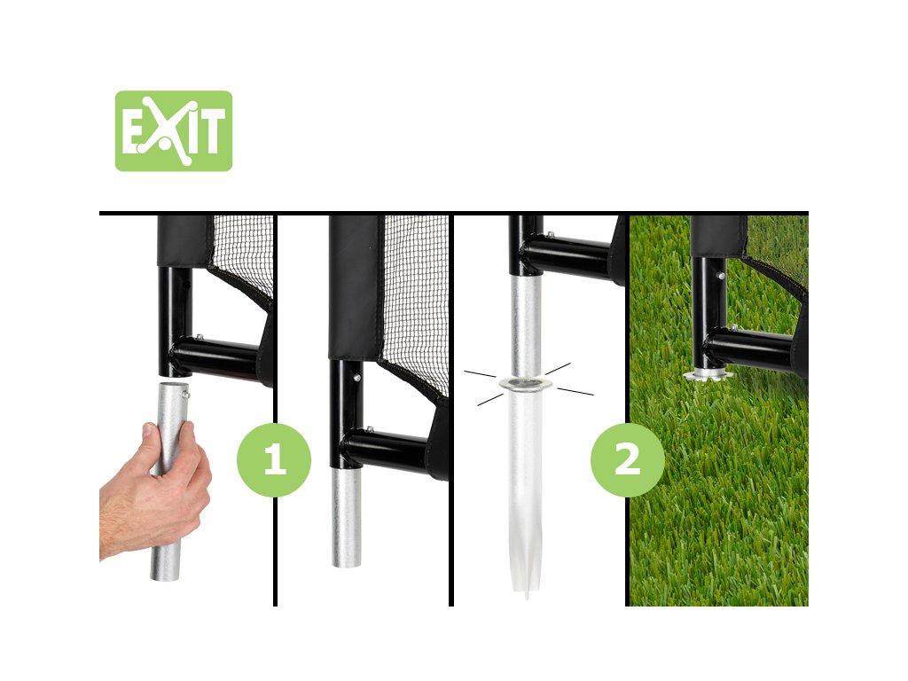Fotbalové branky Exit představují kombinaci róbustní konstrukce, překrásného designu a vysoké kvality. Branky Finta, Coppa a Meastro jsou ideální při hrách na zahradě, pro velké i malé. Díky svojí černé barvě, propracovanou konstrukcí i sítí budou tyto branky vypadat dobře v každé zahradě a svým jedinečným uchycením síťky a upevněním na trávník dostane Vaše hra ten správný náboj a zážitek.