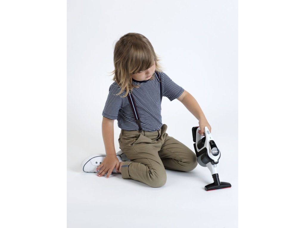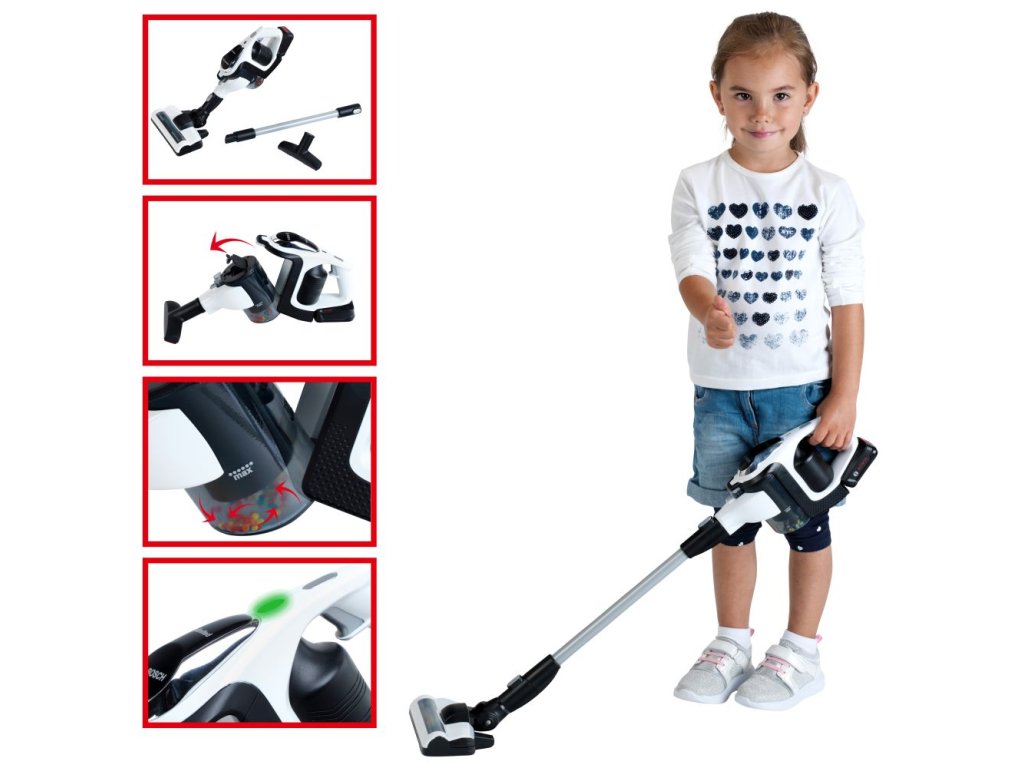 Vysávejte doma jako maminka! S tímto modelem tyčového vysavače Bosch je vysávání skvělá zábava. Vysavač je věrnou kopií originálu, má výměnné nástavce a je možné použít trubici k proměně malého ručního vysavače na tyčový. Barevné kuličky v nádobě vysavače se během vysávání točí. Provoz na baterie - 3 ks 1,5 V AA - nejsou součástí balení. Vhodné pro děti od 3 let. Maximální výška vysavače 80 cm. Rozměry balení: 43 x 18 x 15 cm.