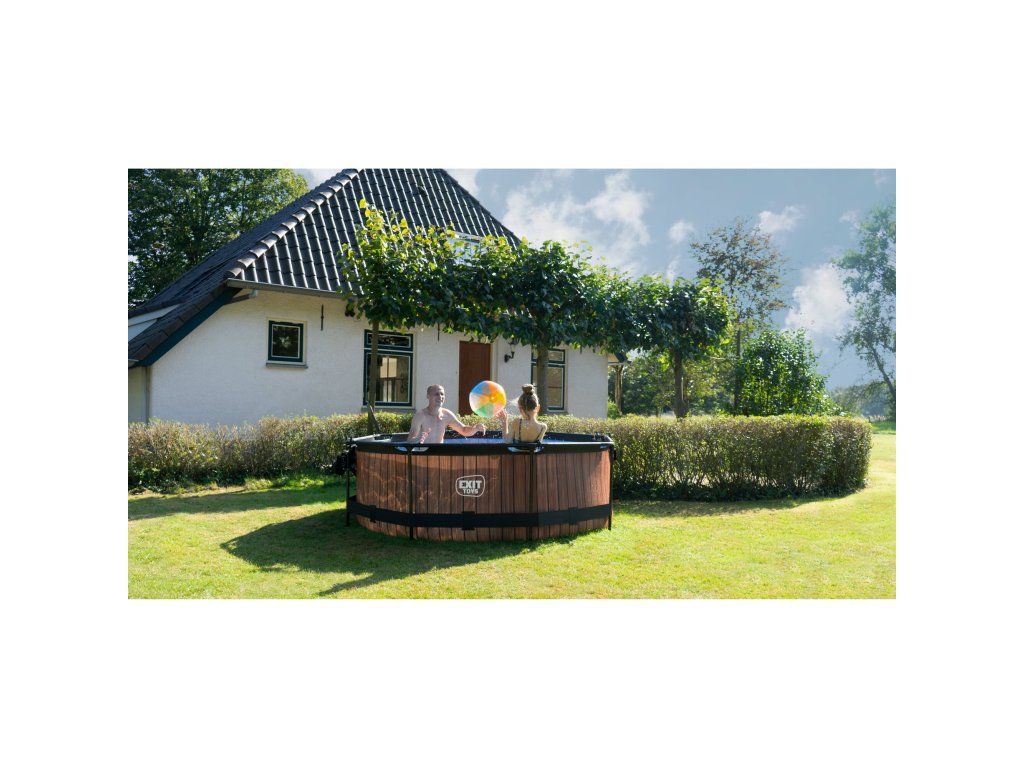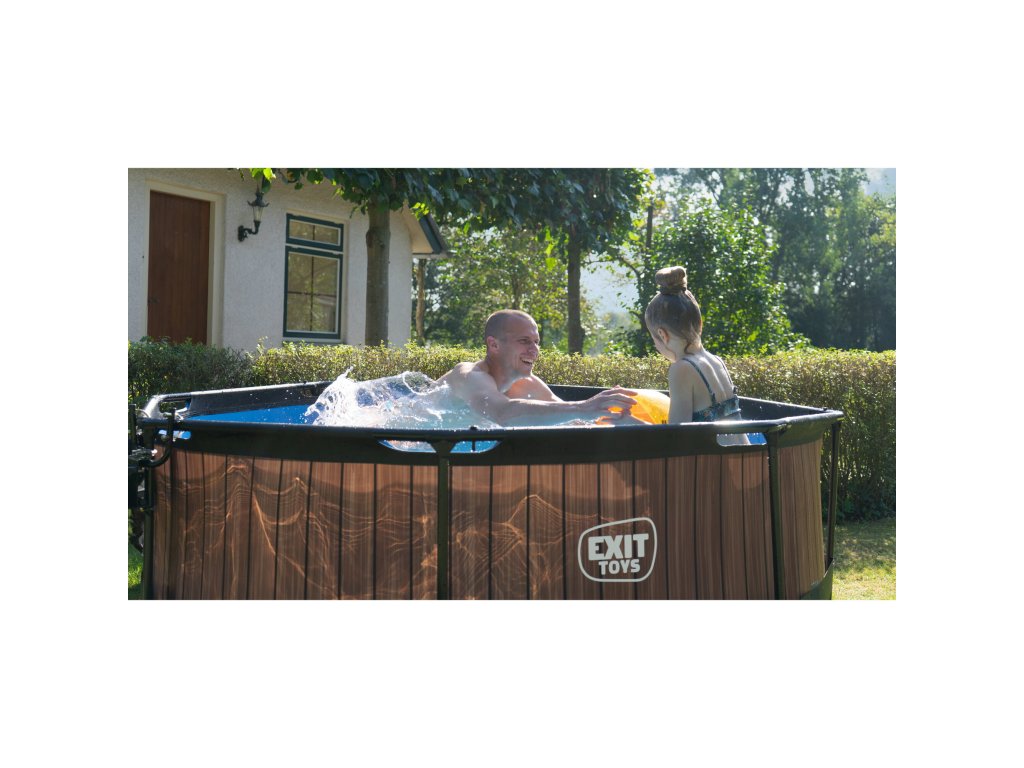 Kamenný, limetkový, nebo dřevěný vzor bazénu s černou konstrukcí se hodí do každé zahrady. Vnitřní část bazénu je modrá. Pevnost bazénu zajišťují třívrstvé stěny z PVC a polyesteru. Filtrační čerpadlo udržuje vodu čerstvou a pohyblivou, aby se zabránilo znečištění. Kartušová filtrace je snadno instaluje na bazén a voda je filtrována filtry v kartušové filtraci. Součástí balení je jeden filtr.