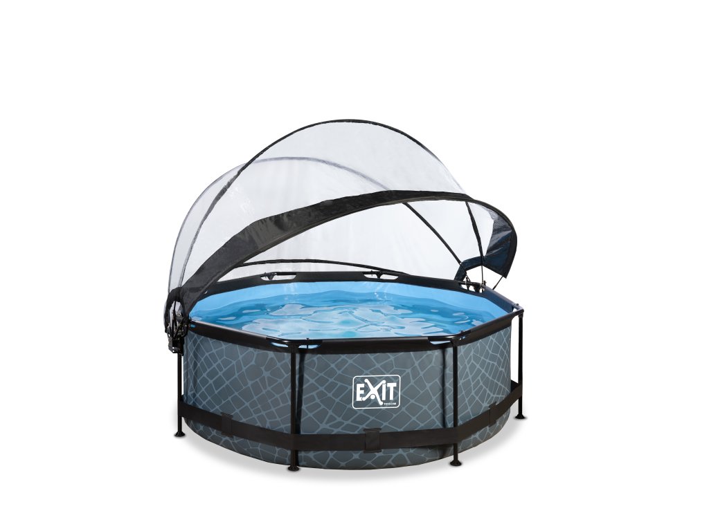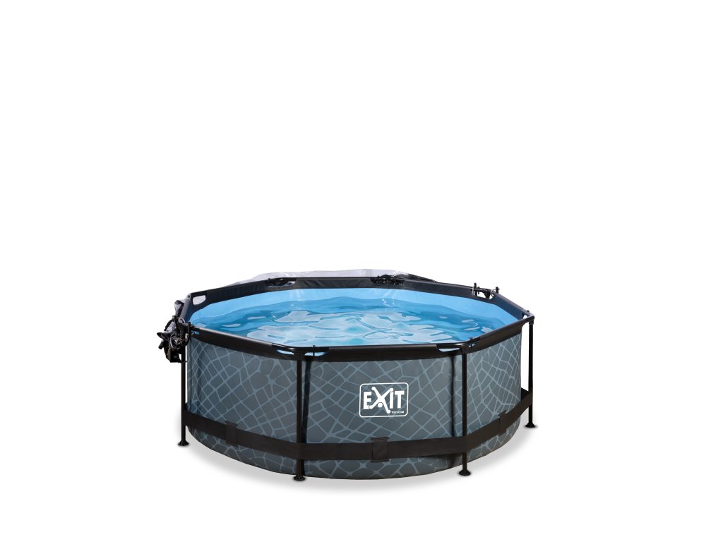 Kamenný, nebo dřevěný vzor bazénu s černou konstrukcí se hodí do každé zahrady. Vnitřní část bazénu je modrá. Pevnost bazénu zajišťují třívrstvé stěny z PVC a polyesteru. Filtrační čerpadlo udržuje vodu čerstvou a pohyblivou, aby se zabránilo znečištění. Kartušová filtrace je snadno namontovatelná na bazén a voda je filtrována filtry v kartušové filtraci. Součástí balení je jeden filtr.