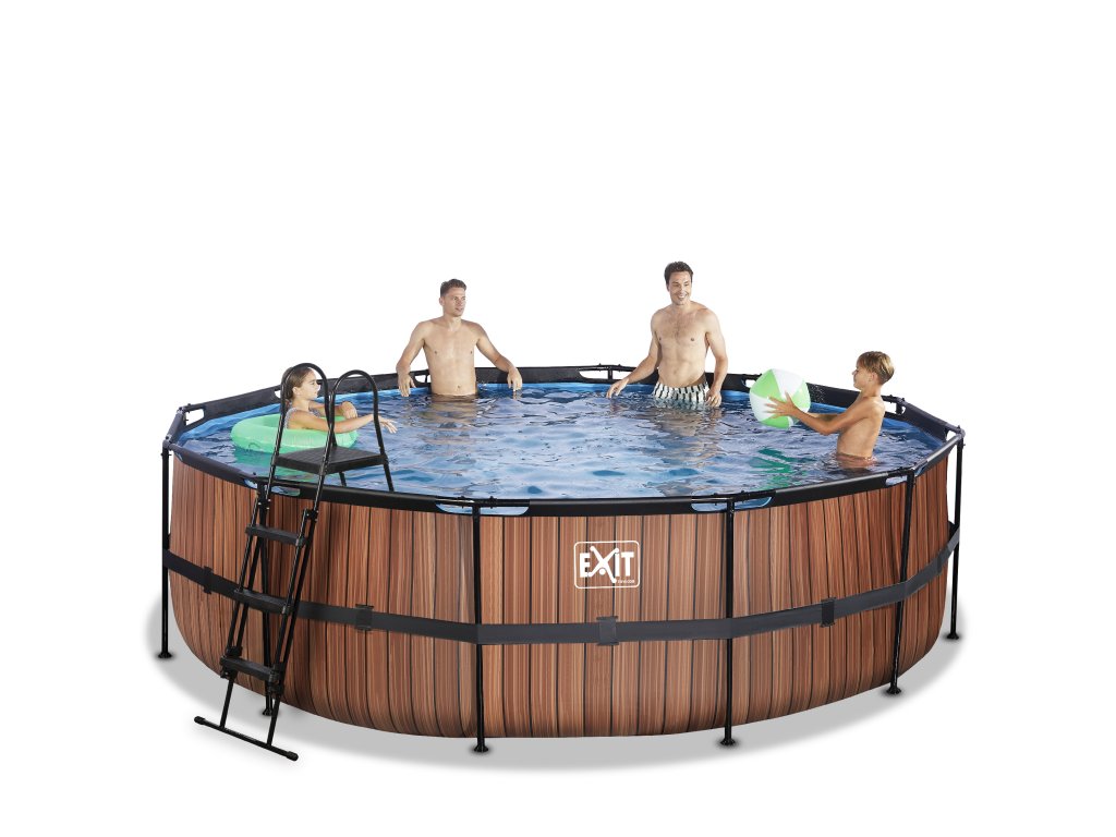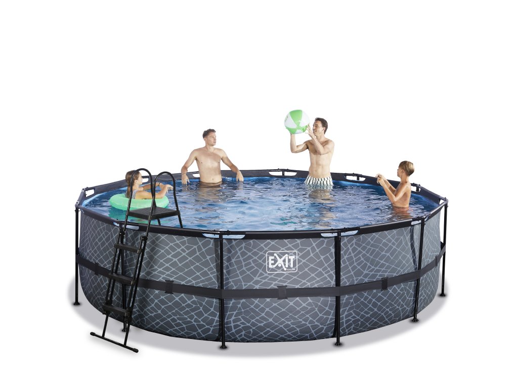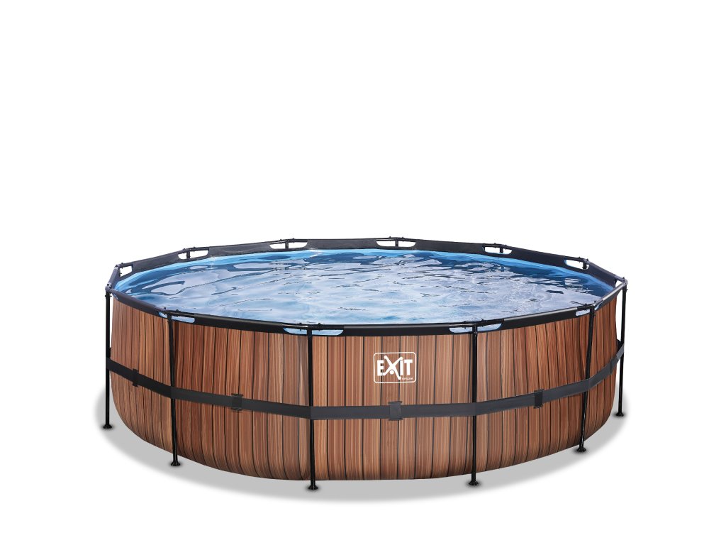 Kamenný, nebo dřevěný vzor bazénu s černou konstrukcí se hodí do každé zahrady. Vnitřní část bazénu je modrá. Pevnost bazénu zajišťují třívrstvé stěny z PVC a polyesteru. Filtrační čerpadlo udržuje vodu čerstvou a pohyblivou, aby se zabránilo znečištění. Kartušová filtrace je snadno namontovatelná na bazén a voda je filtrována filtry v kartušové filtraci. Součástí balení je jeden filtr.