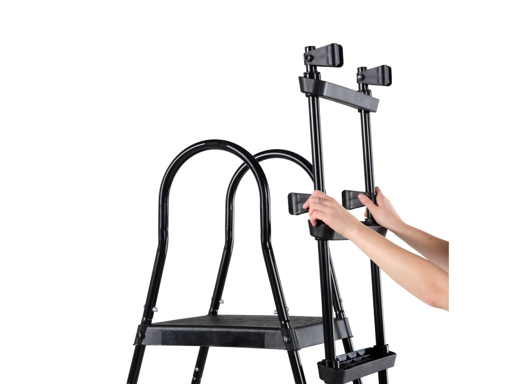 Stabilní konstrukce o síle 32 a 38 mm je ošetřena černou práškovou barvou. Nohy rámu zajišťují optimální stabilitu.