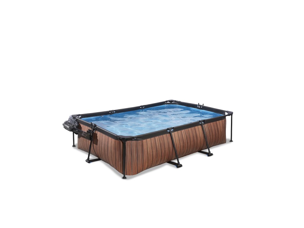 Kamenný, nebo dřevěný vzor bazénu s černou konstrukcí se hodí do každé zahrady. Vnitřní část bazénu je modrá. Filtrační čerpadlo udržuje vodu čerstvou a pohyblivou, aby se zabránilo znečištění. Kartušová filtrace je snadno namontovatelná na bazén a voda je filtrována filtry v kartušové filtraci. Součástí balení je jeden filtr.