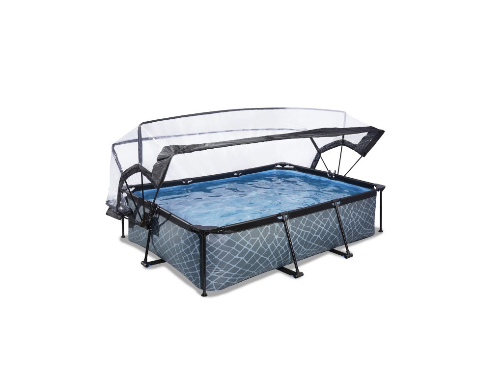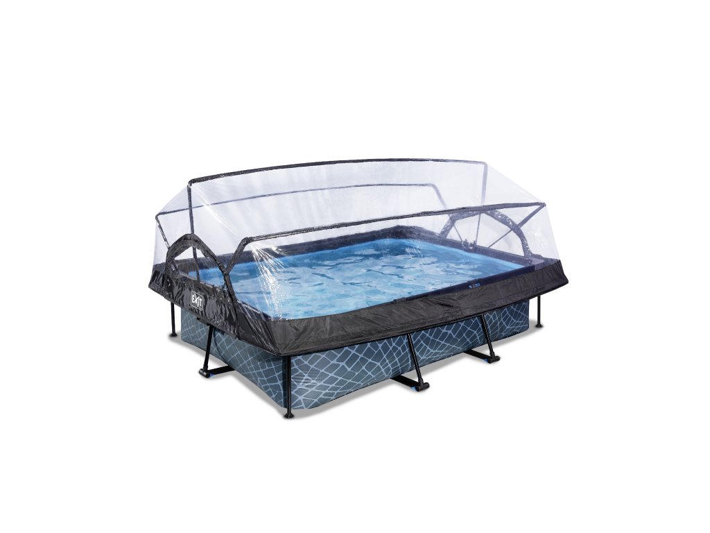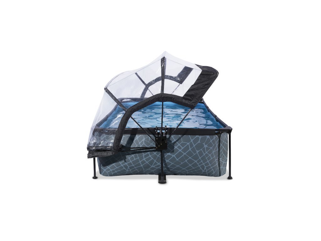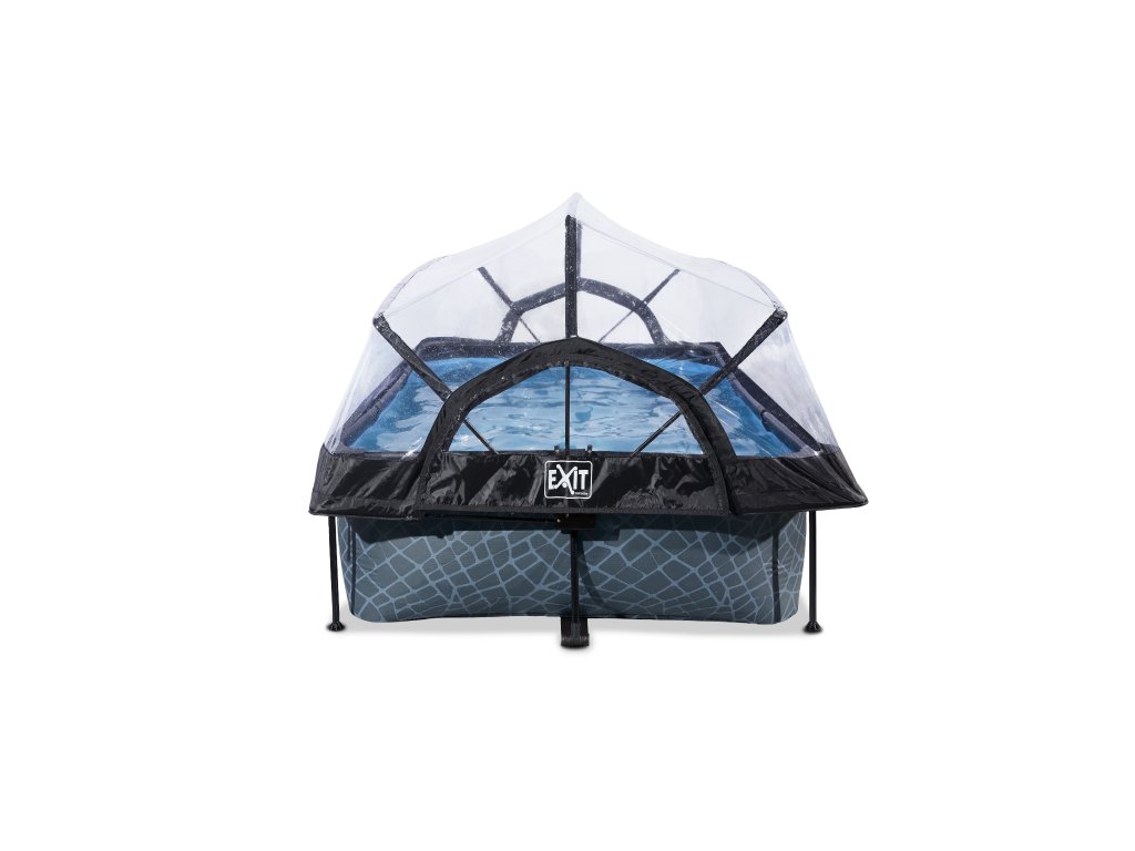 Kopule bazénu EXIT je multifunkční kryt pro váš bazén. Kopule je vhodná pro obdélníkové EXIT bazény o rozměrech 220 x 150 centimetrů a pro mnoho dalších rámových bazénů se stejnými rozměry.