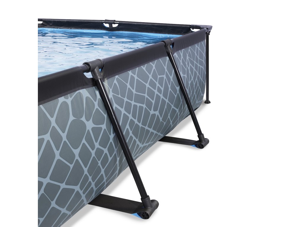 Kamenný, nebo dřevěný vzor bazénu s černou konstrukcí se hodí do každé zahrady. Vnitřní část bazénu je modrá. Filtrační čerpadlo udržuje vodu čerstvou a pohyblivou, aby se zabránilo znečištění. Kartušová filtrace je snadno namontovatelná na bazén a voda je filtrována filtry v kartušové filtraci. Součástí balení je jeden filtr.