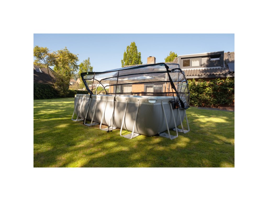 Díky transparentnosti fólie můžete sledovat dění v bazénu a zavřeném stavu chrání kopule přístup do bazénu dětem a zvířatům.