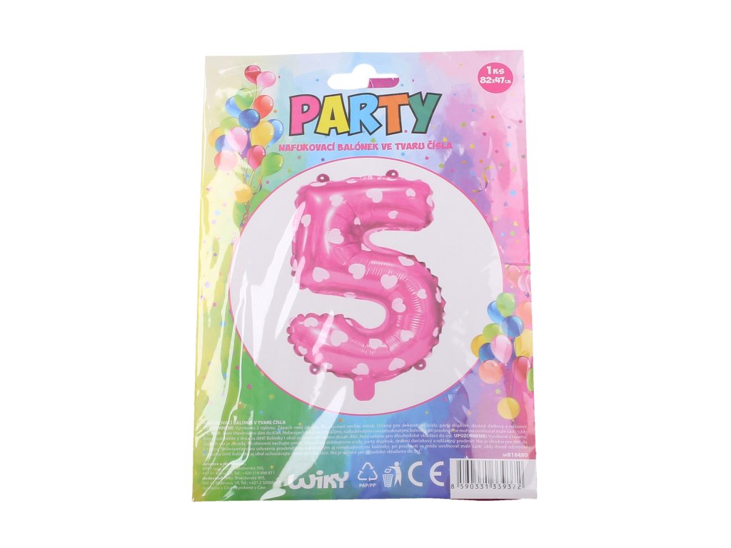 Růžový nafukovací balónek se srdíčky ve tvaru čísla je vhodný jako doplněk na narozeninovou párty!