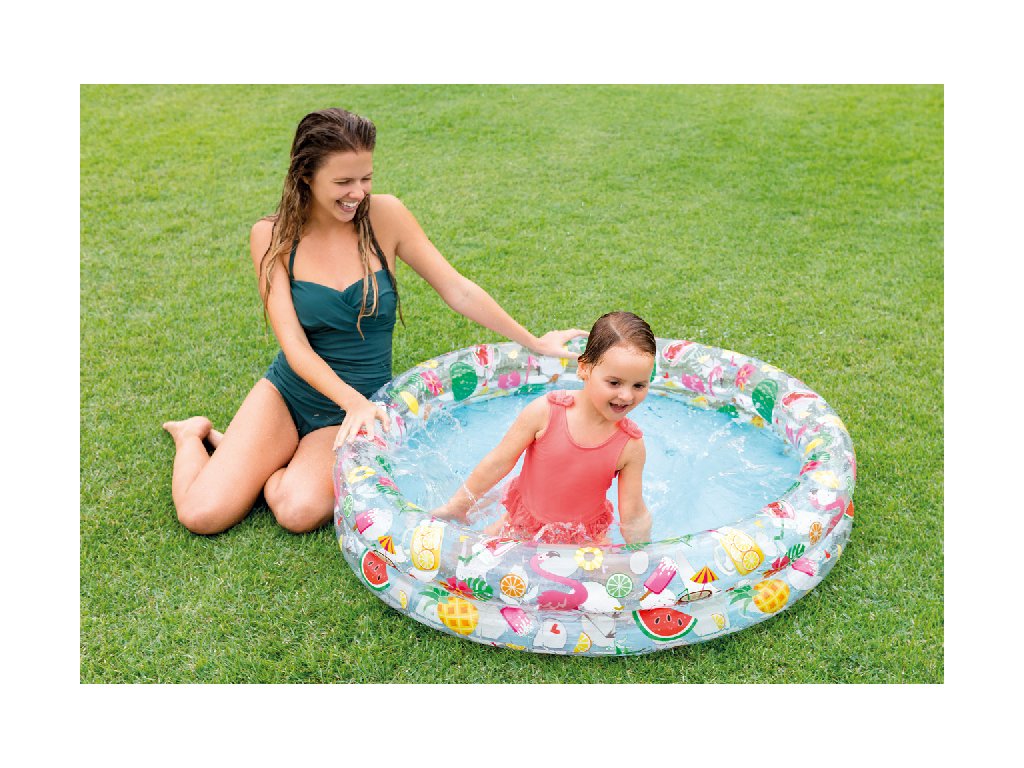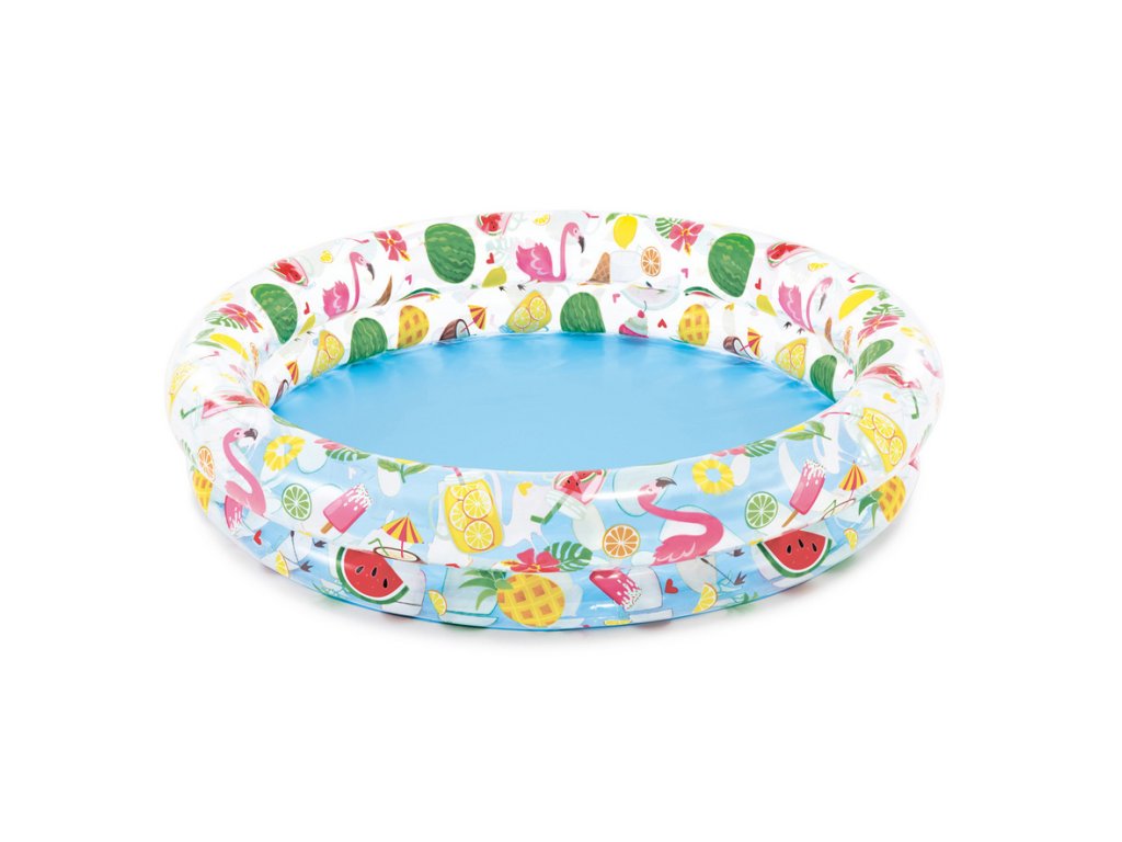 Veselý nafukovací bazének s motivem letního osvěžení, nesmí v létě chybět na žádné zahradě! Bazén je vyroben z kvalitního PVC materiálu a jeho rozměry činí 122 x 25 cm.