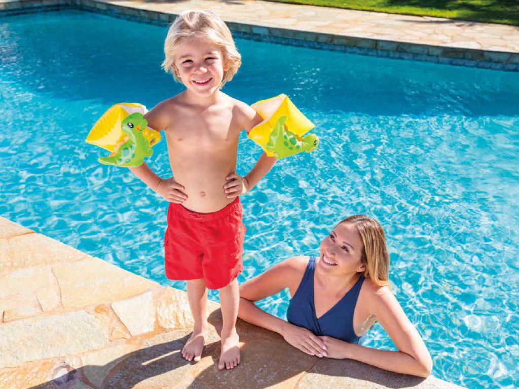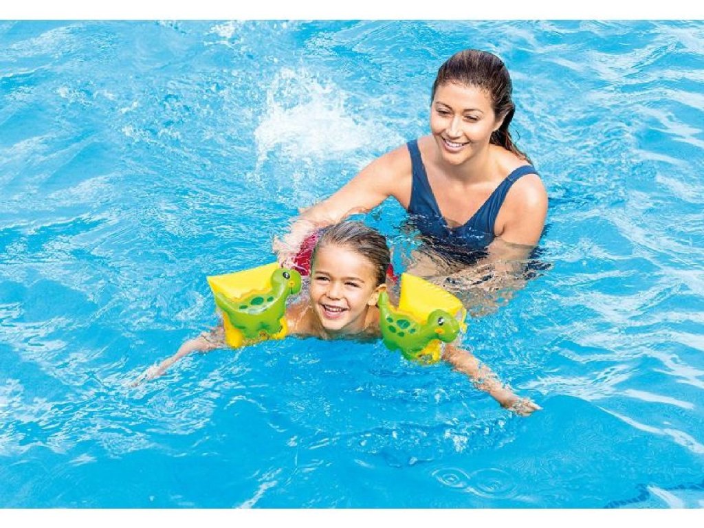 Nafukovací rukávky pro neplavce s pěkným motivem Dinosaura. UPOZORNĚNÍ: Používat pouze ve vodě takové hloubky, kde dítě stačí, a pouze pod dohledem dospělé osoby.