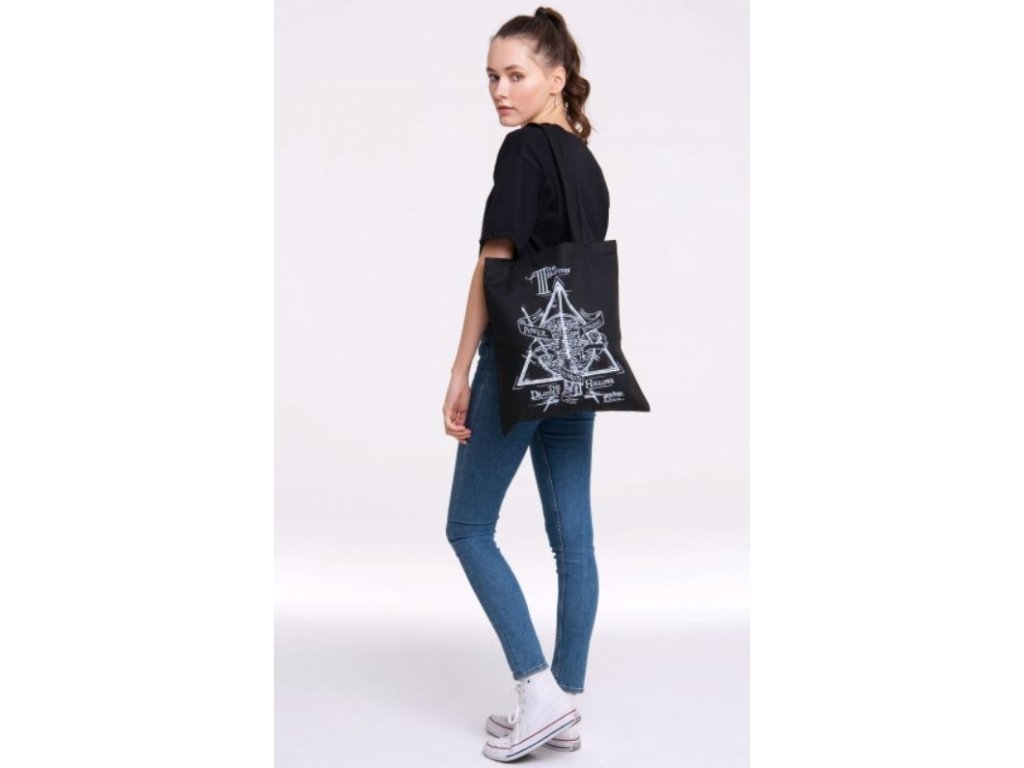 Shopping taška na rameno Harry Potter: Relikvie smrti - Deathly Hallows (38 x 42 cm) černá bavlna