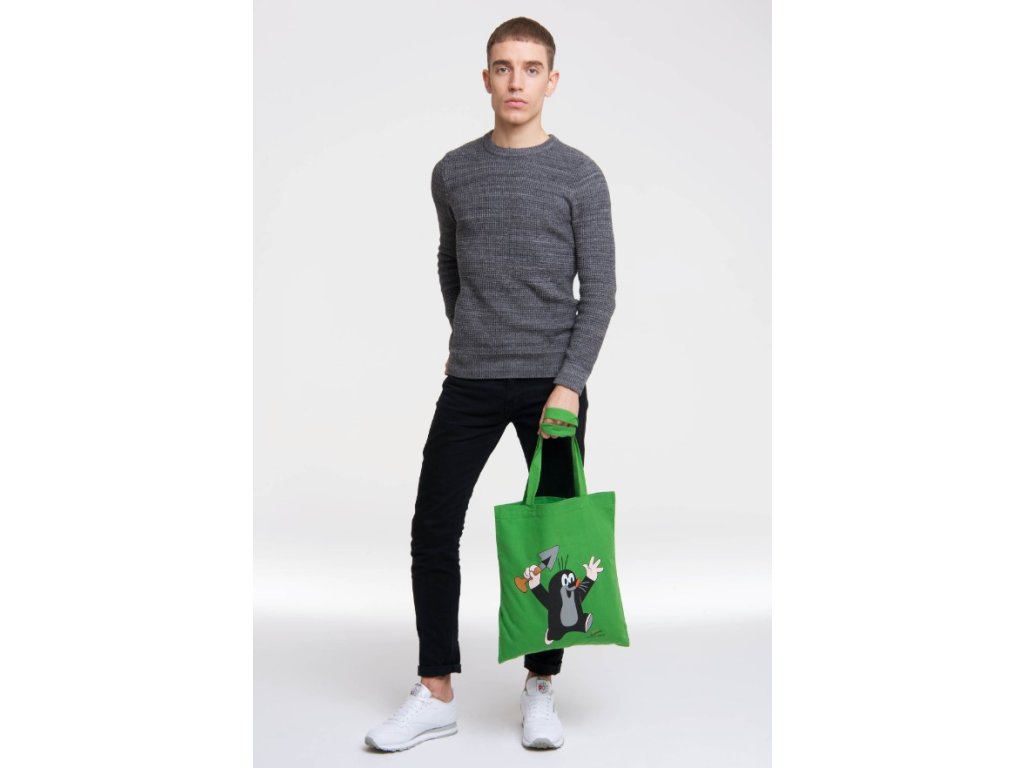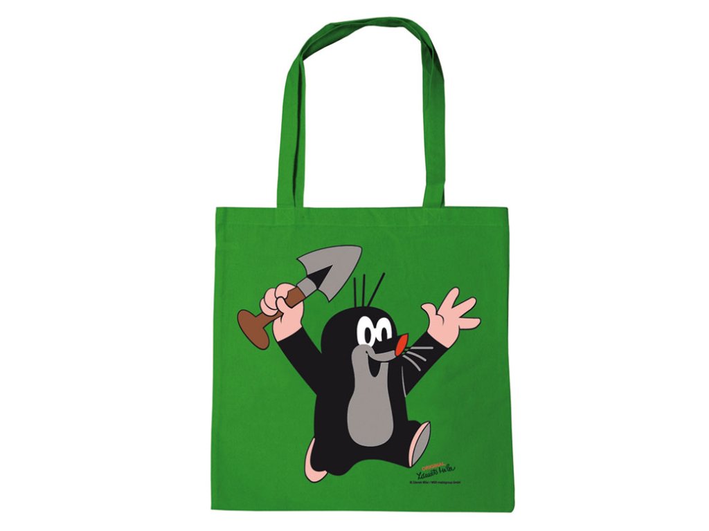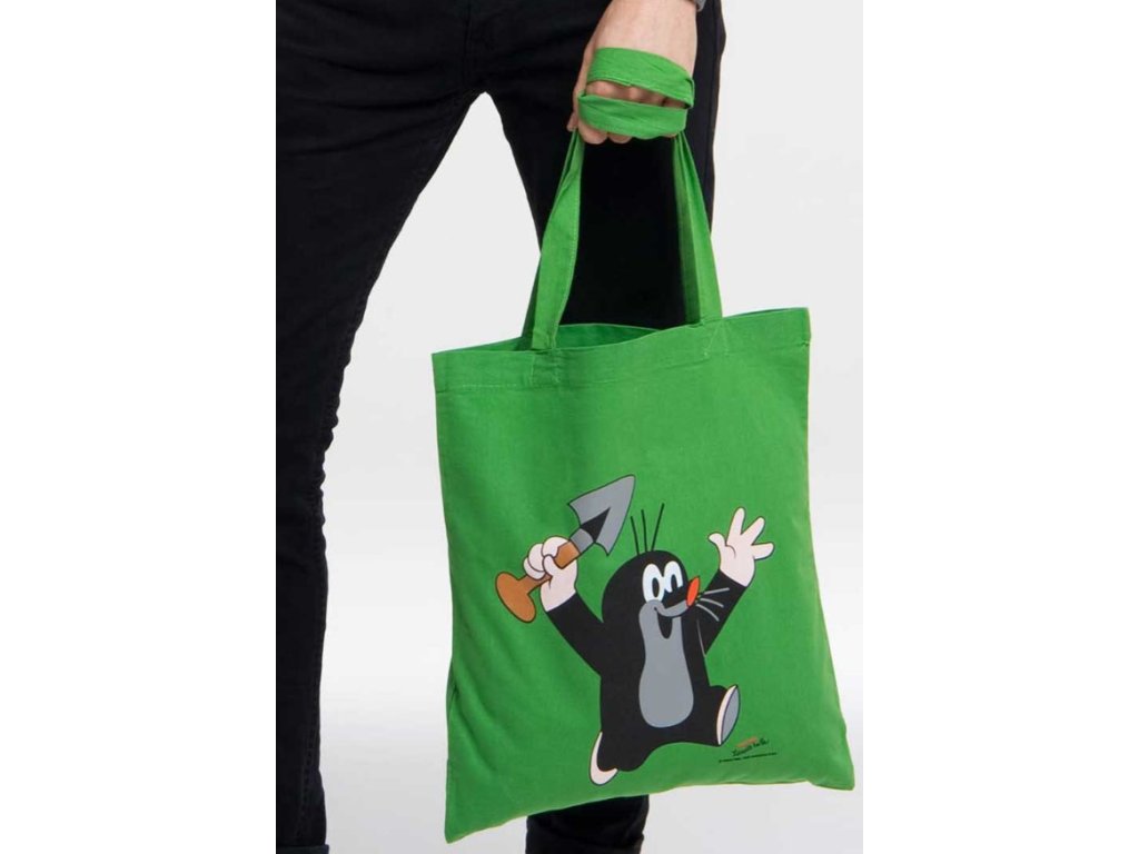 Plátěná taška zelené barvy inspirovaná postavičkou Krtečka.