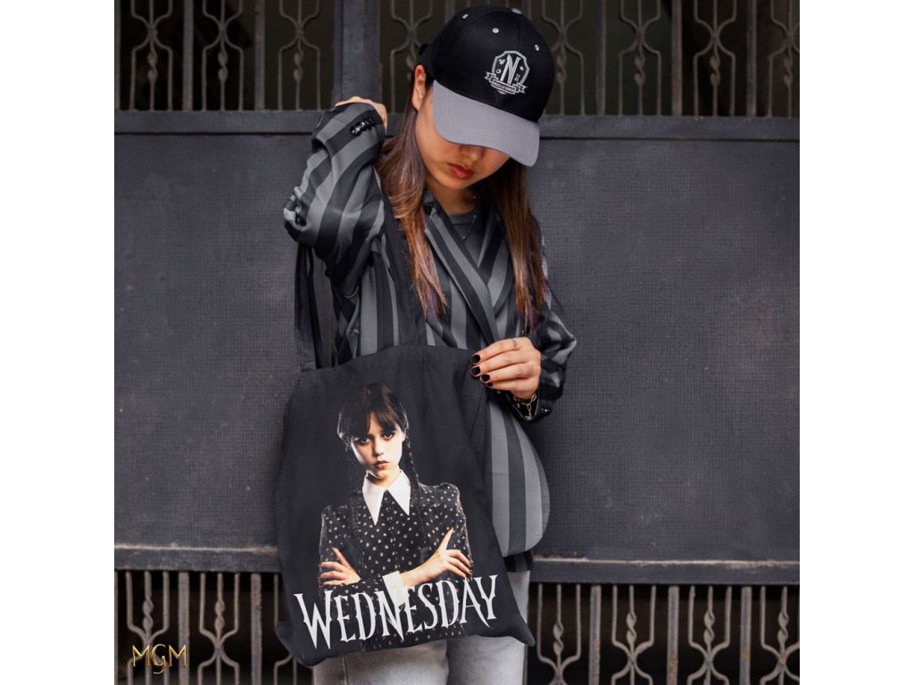 Oficiální produkt - shopping taška z katalogu zboží s grafikou a licencí populárního amerického seriálu Wednesday od společnosti Netflix.