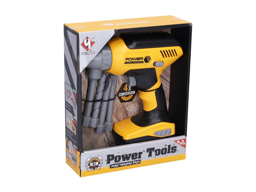 Vrtačka set. Rozměry 17,5x6x21,5 cm. Světelné efekty. 3xAAA baterie nejsou součástí. Přepínač ON/OFF na vrtačce. Součástí 1 vrták, 2 šroubováky, 1 klíč.