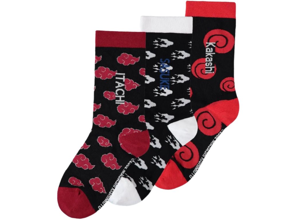 Sada tří párů ponožek vyvedených v motivu japonské mangy Naruto. Vysoké ponožky vyvedené v designu postav a klanů. Ponožky jsou vhodným doplňkem celého outfitu každého fanouška.