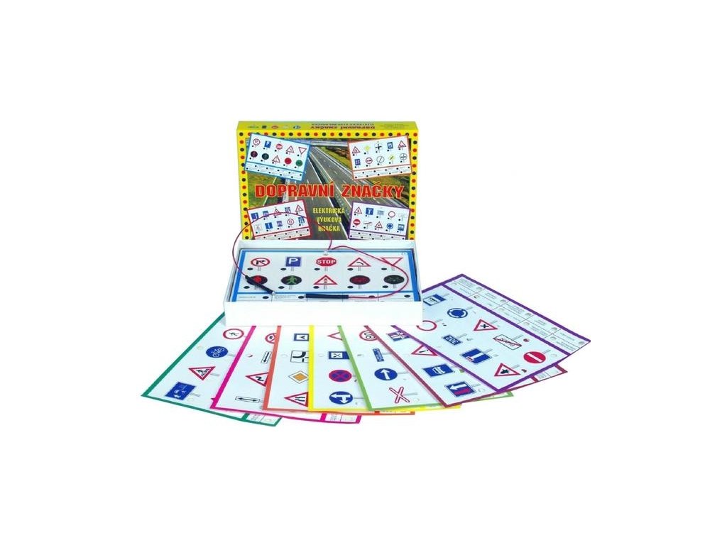Dopravní značky je dětská hra, s jejíž pomocí se naučí hravou formou 80 dopravních značek. Hra obsahuje 8 výměnných listů s vyobrazeními a názvy 80 nejběžnějších dopravních značek. Úkolem je přiřadit ke každé značce správný název.Hra je napájena dvěma tužkovými bateriemi, které nejsou součástí výrobku.
