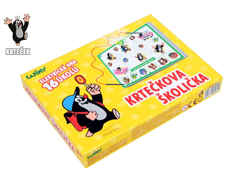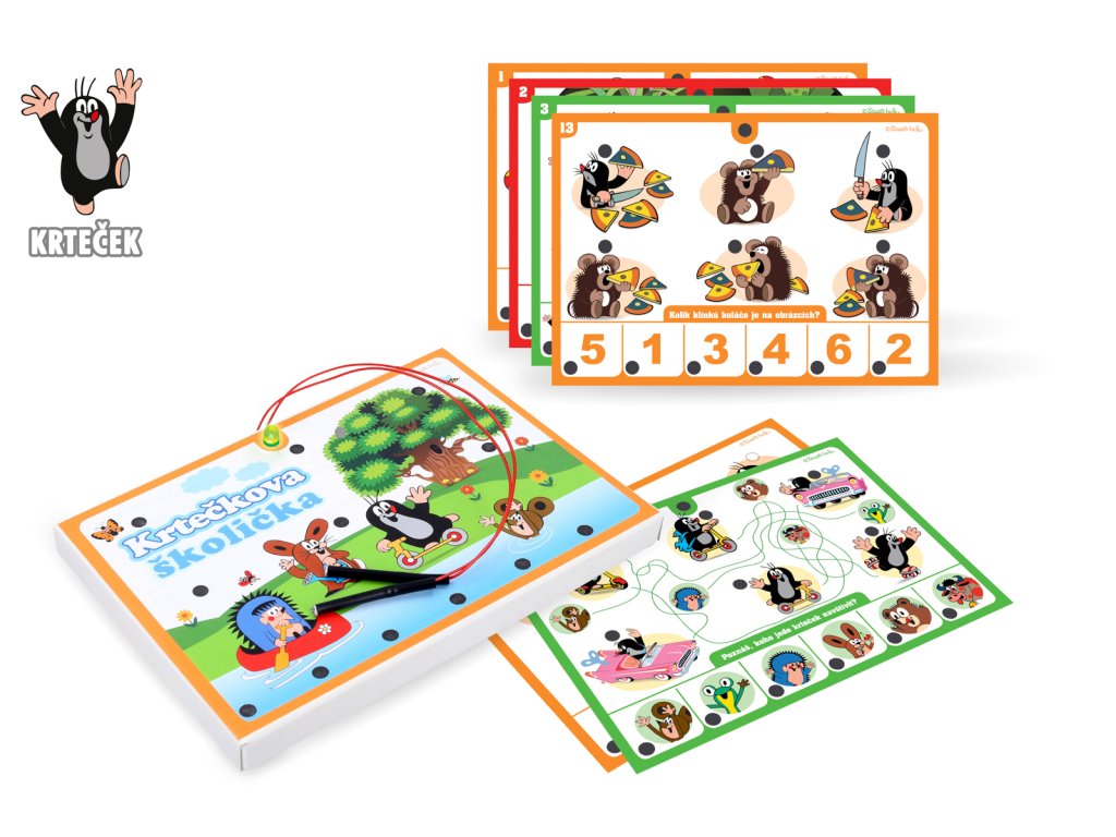 V elektronické hře Školička mají děti za úkol odhalovat souvislosti mezi obrázky a propojovat je vodivým drátkem. Každý list je zaměřen na určitou oblast dětského světa. Hra rozšiřuje vědomosti, vyžaduje postřeh, nutí děti všímat si vztahů mezi předměty, porovnávat je podle určitých vlastností a přiřazovat odpovídající předměty k sobě, bez nutnosti umět číst, neboť listy neobsahují žádné texty. Správnou odpověď na otázku signalizuje rozsvícené zelené světélko elektronického obvodu. Po výběru otázky dítě zvolí odpověď a její správnost si ověří tak, že se dotkne jedním testovacím kolíkem kontaktní plošky u otázky a druhým kolíkem plošky u odpovědi. Pokud je odpověď správná, rozsvítí se zelené světélko. Obsah balení: sadu výměnných 16 listů formátu A5 se 176 obrázky, mezi nimiž děti hledají souvislosti. panel s elektronikou a pouzdrem na baterie Testovací tabulky jsou napájeny dvěma "tužkovými" bateriemi, které nejsou součástí výrobku. Doporučený věk: od 3 let