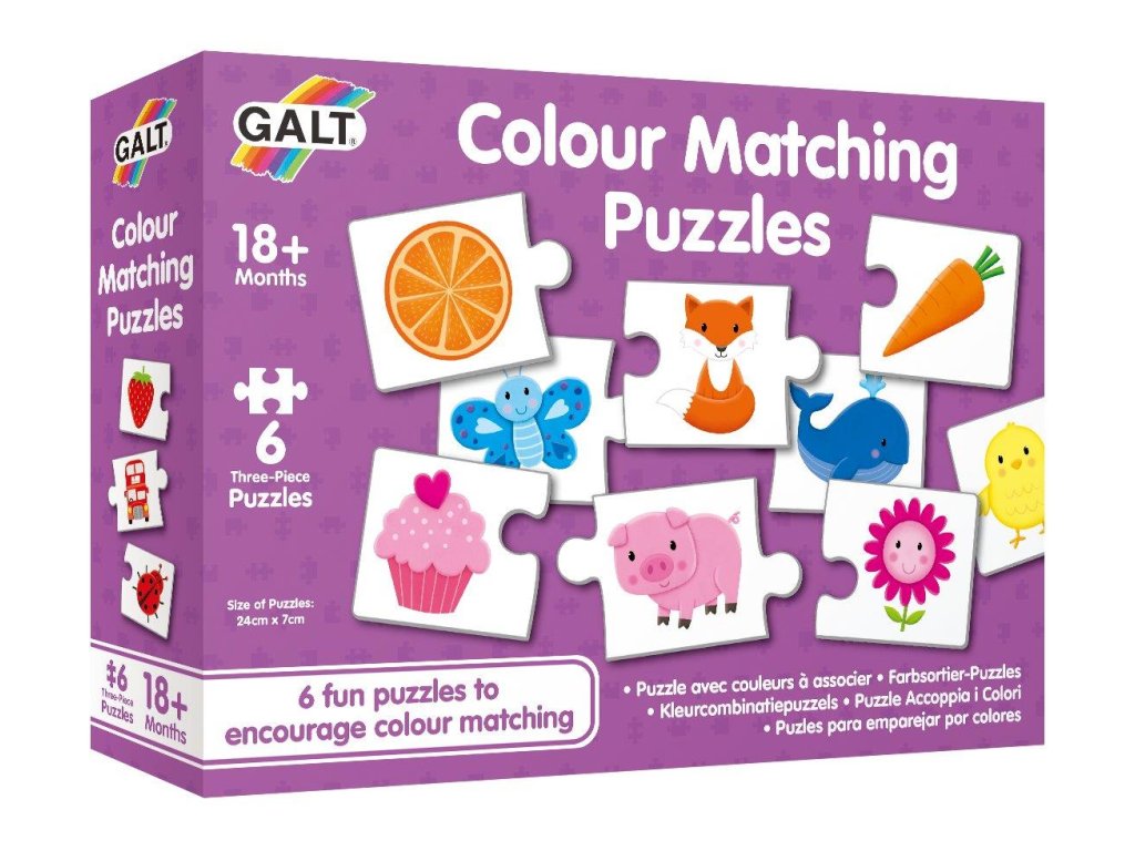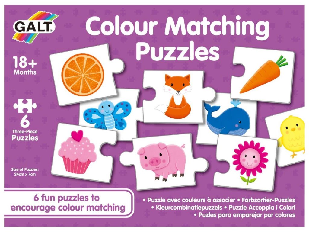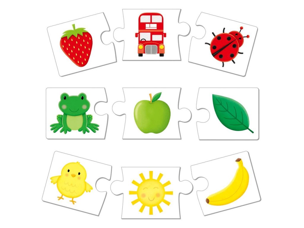 Sada šesti barevných tematických puzzle pro velmi malé děti. Každé puzzle se skládá ze tří dílků a pomůže při nácviku poznávání barev známých předmětů a zvířátek a při rozvoji dovedností, jako je párování a třídění. Ideální první puzzle obsahující méně dílků, které se rychle skládá.