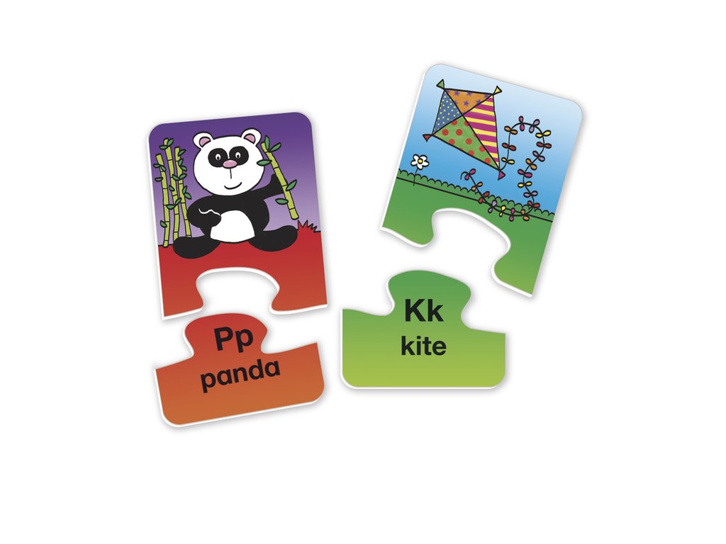 Celkem lze z dílků složit 26 párů puzzlí, jež znázorňují anglická slovíčka. Aby se Vaše dítě nemohlo splést, zapadají do sebe jen správně sestavené dílky.