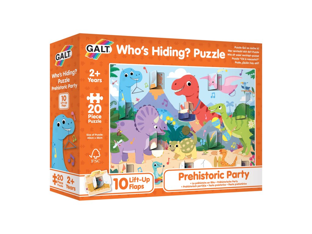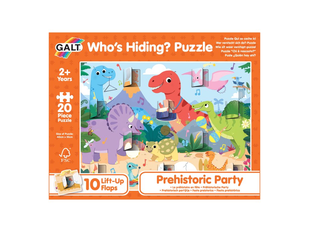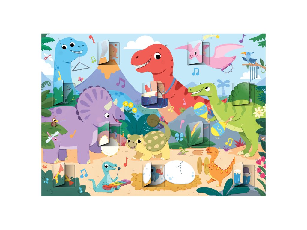 Tyto puzzle přináší zábavné scény s dinosaury s otevíracími okénky, které dětem umožňují prozkoumat, co se pod nimi skrývá.