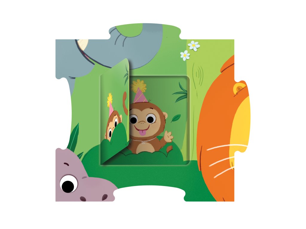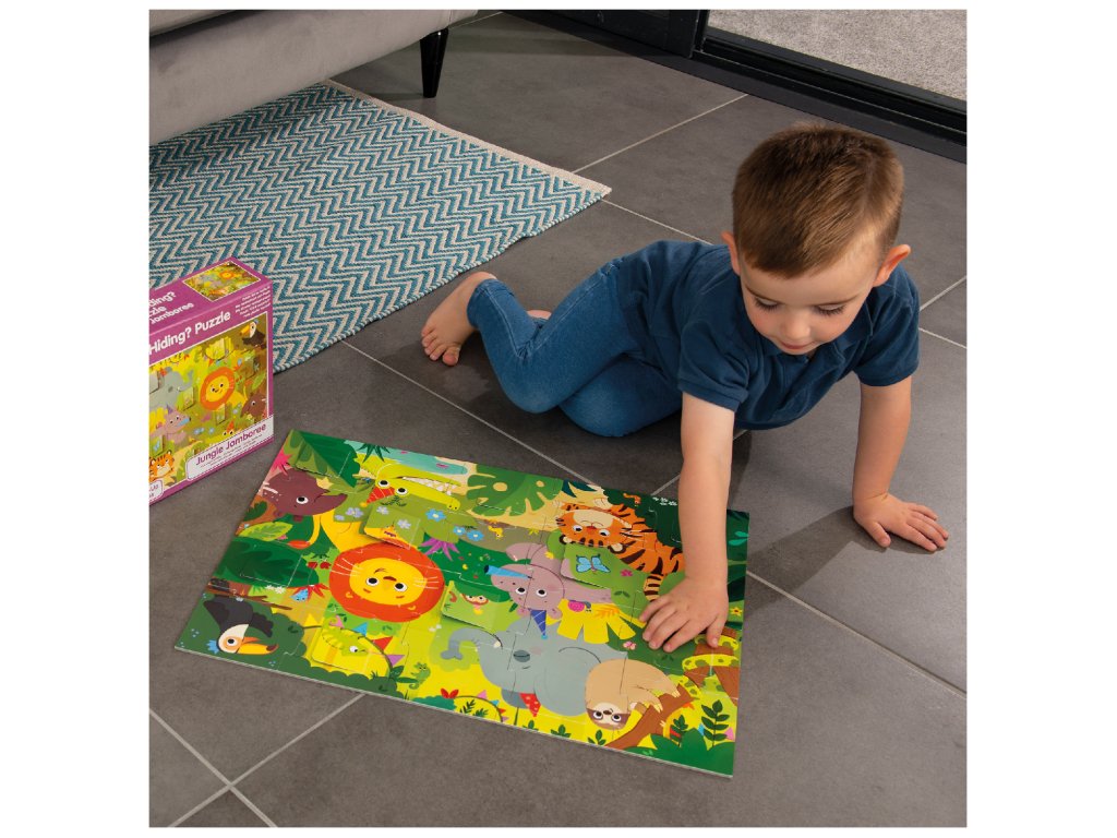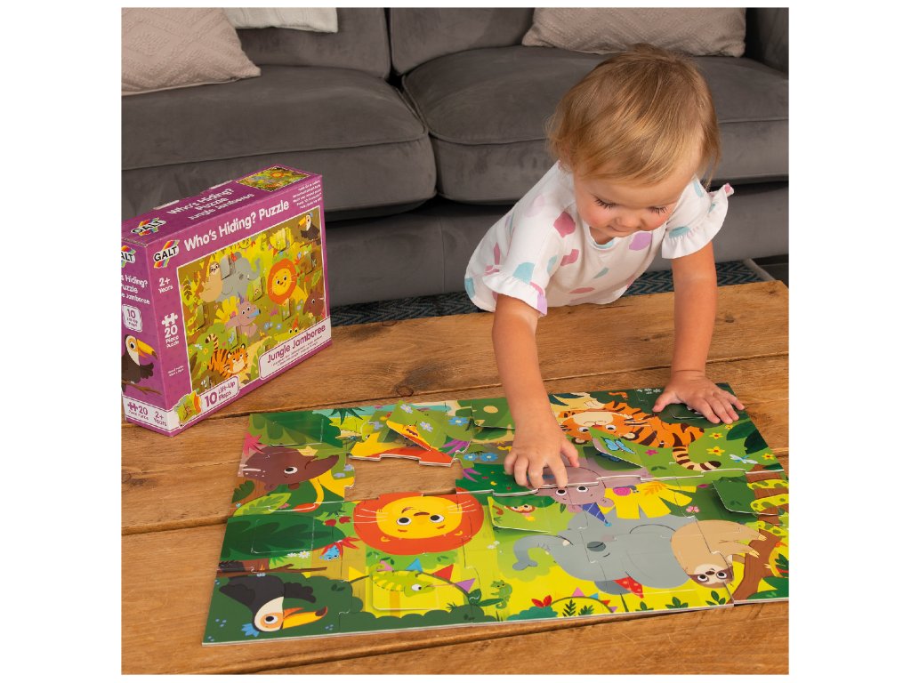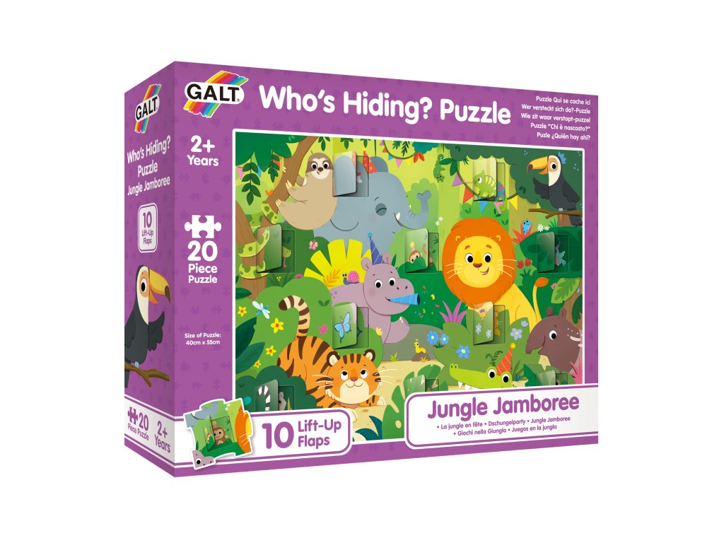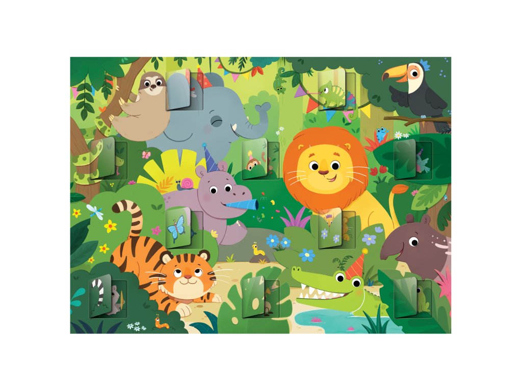 Tyto puzzle přináší zábavné scény z džungle s otevíracími okénky, které dětem umožňují prozkoumat, co se pod nimi skrývá.