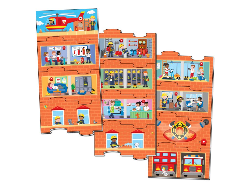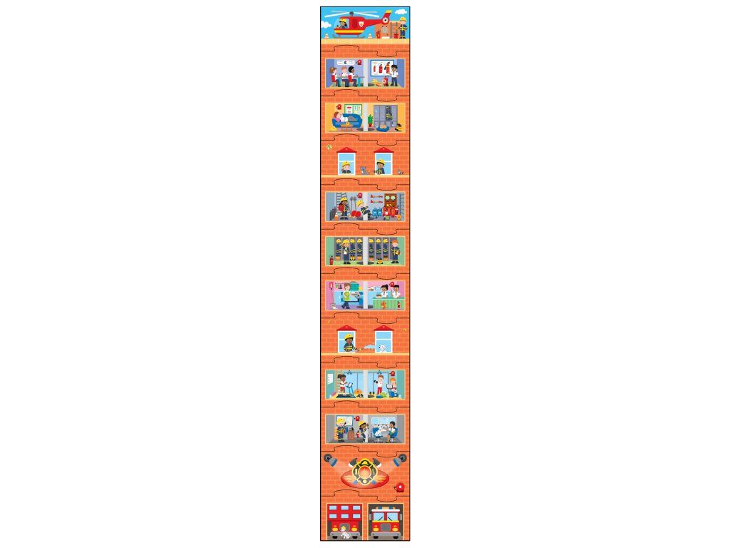 Děti mohou začít s dolním dílkem a připojit 10 dalších dílků v libovolném pořadí, následovaných vrchním dílkem a vytvořit si tak svou požární stanici pokaždé jinou.