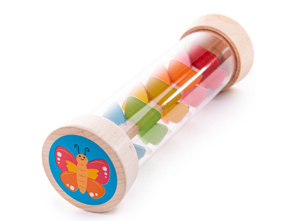 Zabavte ty nejmenší s naší rozkošnou dřevěnou dešťovou holí. Obnovuje jemný uklidňující zvuk deště. Jak budete nástrojem otáčet, barevné korálky budou kaskádovitě padat průhlednou trubicí a vytvářet fascinující zvuky a vizuální efekty. Ideální smyslová hračka pro miminko.Naše senzorická hračka byla speciálně navržena pro nenechavé malé ručičky a pro podporu koordinace ruka-oko při otáčení, třesení a otáčení s holí. Dešťová hůl je dodávána s roztomilými ilustracemi na obou koncích, motýlem a beruškou pro větší vizuální stimulaci. Tato dětská smyslová hračka je skvělým dárkem. Vyrobeno z vysoce kvalitních, zodpovědně získaných materiálů a odpovídá současným evropským bezpečnostním normám. Hlavní vlastnosti:rozvíjí koordinaci ruka-oko a stimuluje smyslyvhodné od narozenívyrobeno z kvalitních zodpovědně získaných materiálů Rozměry: 5,6x19,2x5,6 cmVěk: 0+Materiál: dřevo, plast