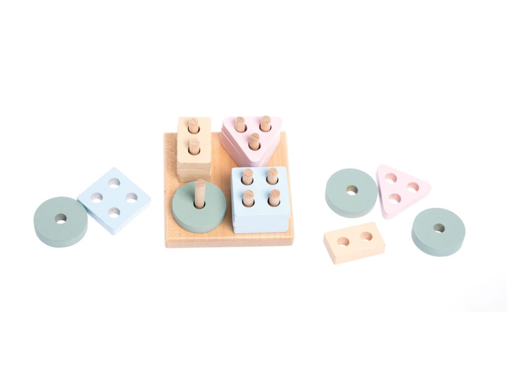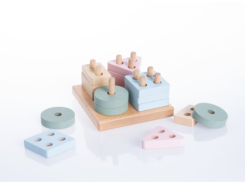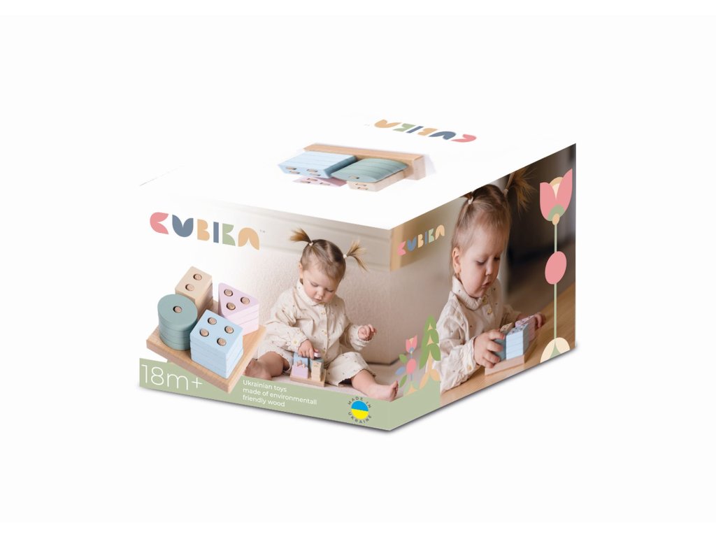 CUBIKA je značka dřevěných hraček vyrobených pouze z ekologicky pěstovaného dřeva s velmi precizním opracováním a líbivým designem a tento výrobek patří do nové kolekce vyrobené v pastelových barvách. Třídíme tvary IV je dřevěná skládačka s 16 barevnými perforovanými geometrickými tvary, které se umísťují na čtvercovou základnu. Jednotlivé tvary mají i své opakující se barvy, které se děti touto hrou také učí rozlišovat. Sortiment hraček značky CUBIKA pomáhá dětem rozvíjet především senzomotorické schopnosti a dovednosti, logické myšlení, kreativitu, představivost a různé poznávací znalosti. Hračky jsou vyrobeny z nejkvalitnějšího javoru a buku a k barvení se používají též vysoce kvalitní barvy na vodní bázi, které jsou naprosto bezpečné pro děti a nemají žádný zápach. Všechny výrobky této značky mají německý certifikát TÜV a jsou vyrobeny dle evropské normy pro bezpečnost hraček EN 71. Doporučený věk od 18 měsíců. Vyrobeno v Evropě.