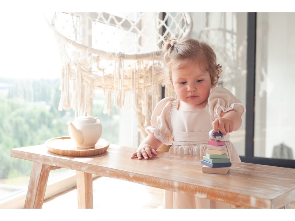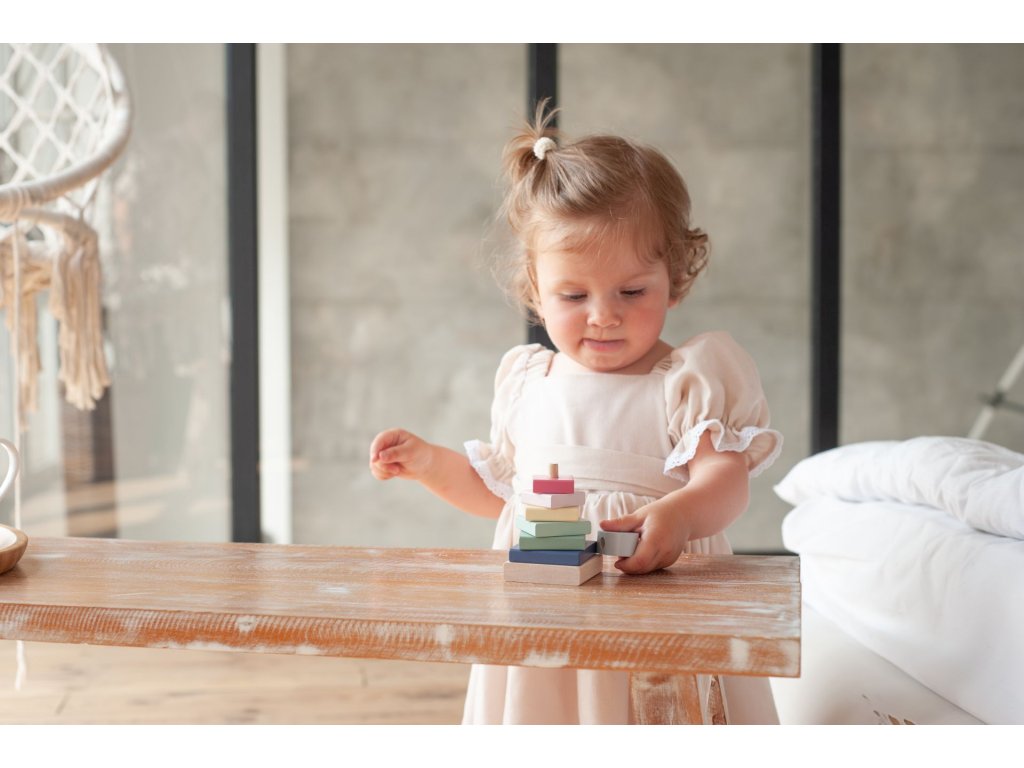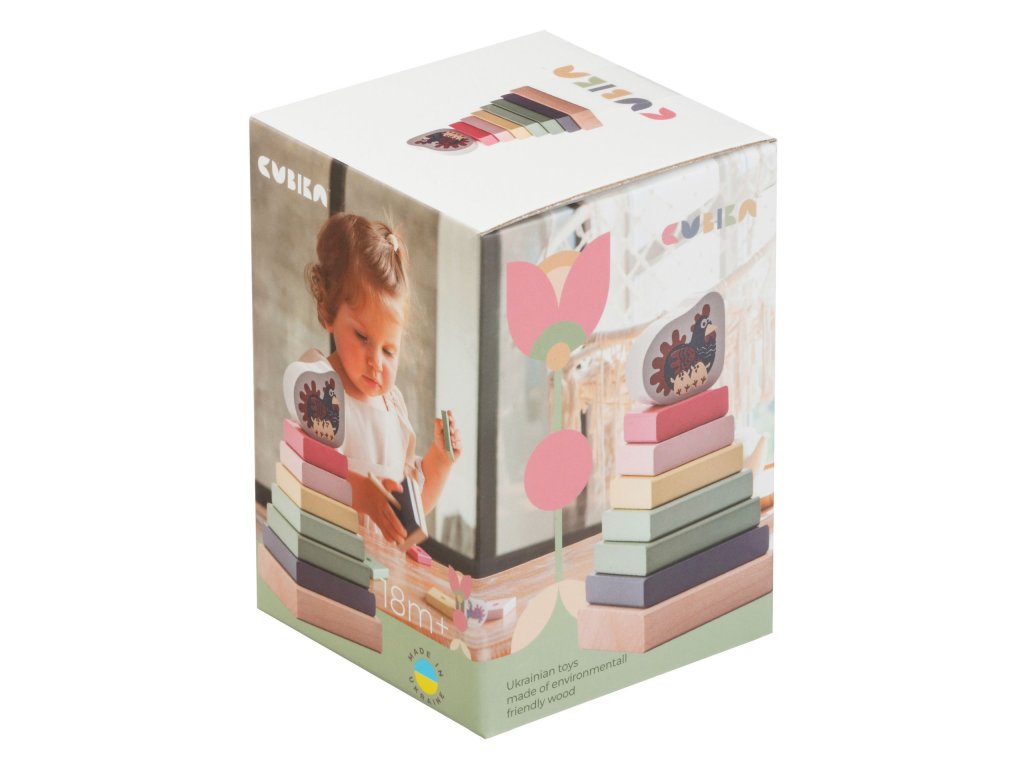 CUBIKA je značka dřevěných hraček vyrobených pouze z ekologicky pěstovaného dřeva s velmi precizním opracováním a líbivým designem a tento výrobek patří do nové kolekce vyrobené v pastelových barvách. Barevná pyramida se slepičkou je dřevěná skládačka s 8 díly, které by na sebe měly být poskládány tak, aby bylo možné zachovat při stavbě správný tvar starodávné egyptské pyramidy a zároveň zachovat plynulou posloupnost barev. Při její stavbě se také děti naučí co je to kompatibilita. Sortiment hraček značky CUBIKA pomáhá dětem rozvíjet především senzomotorické schopnosti a dovednosti, logické myšlení, kreativitu, představivost a různé poznávací znalosti. Hračky jsou vyrobeny z nejkvalitnějšího javoru a buku a k barvení se používají též vysoce kvalitní barvy na vodní bázi, které jsou naprosto bezpečné pro děti a nemají žádný zápach. Všechny výrobky této značky mají německý certifikát TÜV a jsou vyrobeny dle evropské normy pro bezpečnost hraček EN 71. Doporučený věk od 18 měsíců. Vyrobeno v Evropě.