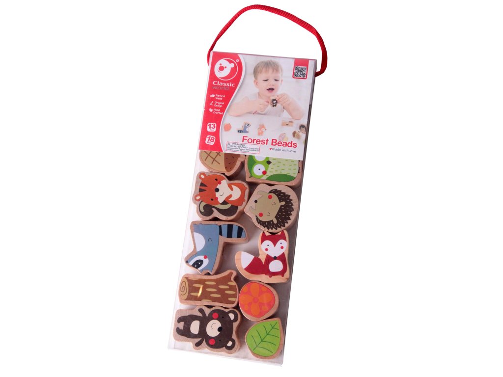 Barevná dřevěná navlékačka s motivy lesních zvířátek přináší dětem zábavu i podporu rozvoje jemné motoriky. Sada obsahuje 13 dílků – medvídek, liška, ježek, sovička a další milé postavičky s velkým otvorem pro snadné navlékání na šňůrku. Při hře si děti trénují koordinaci, trpělivost a rozpoznávání tvarů. Rozměr balení: 9,5 × 26 cm Vhodné pro děti od 18 měsíců.