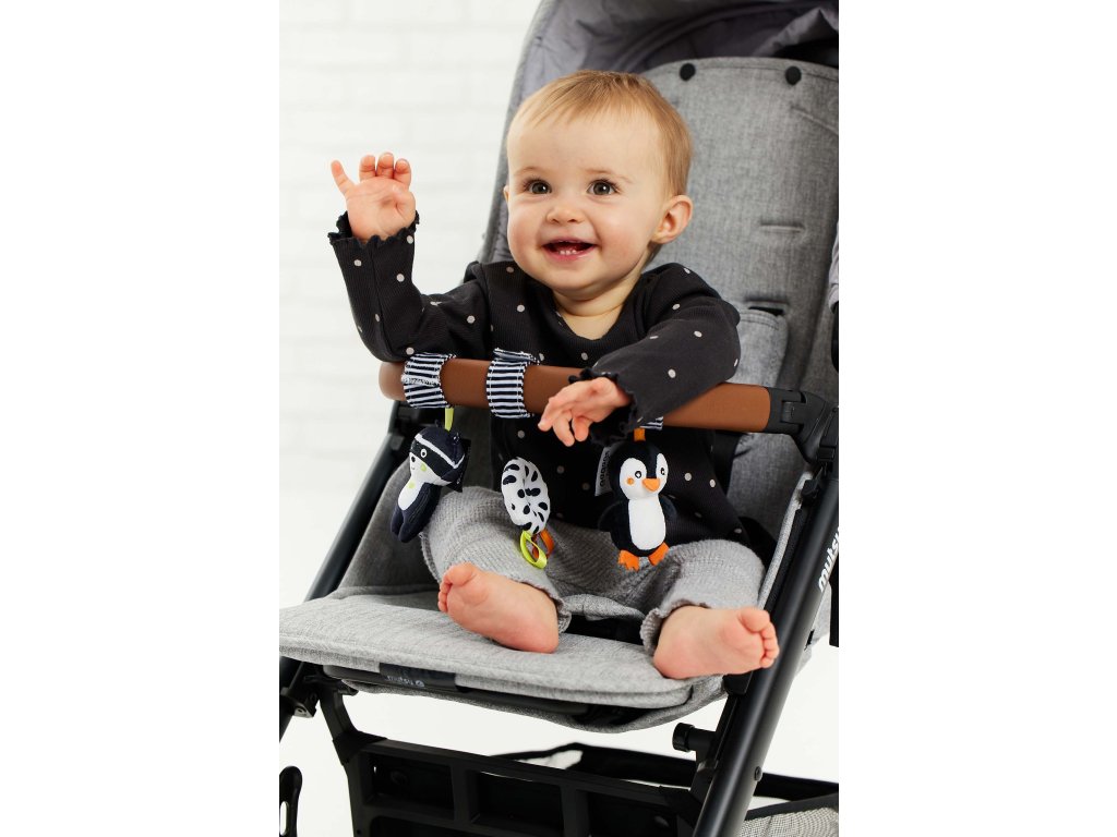 Závěsná plyšová hračka GaGaGu má kontrastní barvy a vzory, které stimulují zrak dítěte. Plyšové prvky - opice, panda a míč - a stuhy vybízejí děti, aby je uchopily a podpořily tzv. jemnou motoriku (pohyby prstů a rukou) a učení motorické koordinace. Pohodlný způsob zapínání na suchý zip (příjemný na dotek a snadné zapínání) vám umožní přívěsek připevnit kamkoli, například na kočárek, na postýlku, na houpačku nebo autosedačku. Hračka je velmi lehká a šikovná, snadno skladná, ideální na procházku nebo výlet. Je určen pro děti ve věku 0m + a je jedním z 12 produktů dostupných pod značkou GaGaGu. Kromě přívěsků i chrastítka, spirála, kniha, smyslové kostky a smyslová podložka. Všechny hračky GaGaGu lze vzájemně kombinovat.Informace o produktu (v bodech):• kontrastní barvy a vzory – stimulují zrak dítěte• plyšové prvky - opice, panda a míč - a stuhy podporují uchopení, což podporuje jemnou motoriku (pohyby prstů a rukou)• lehká a šikovná hračka – na procházku, domů či na cesty