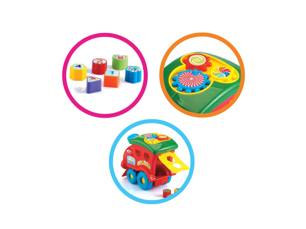 Barevná vkládačka ve tvaru lokomotivy je určena pro ty nejmenší. S tímto kouskem si děťátko užije zaručeně spoustu zábavy! Jednotlivé tvary s obrázky lze vkládat do příslušných otvorů. Vkládačka rozvíjí motorické, zrakové a sluchové schopnosti děťátka.