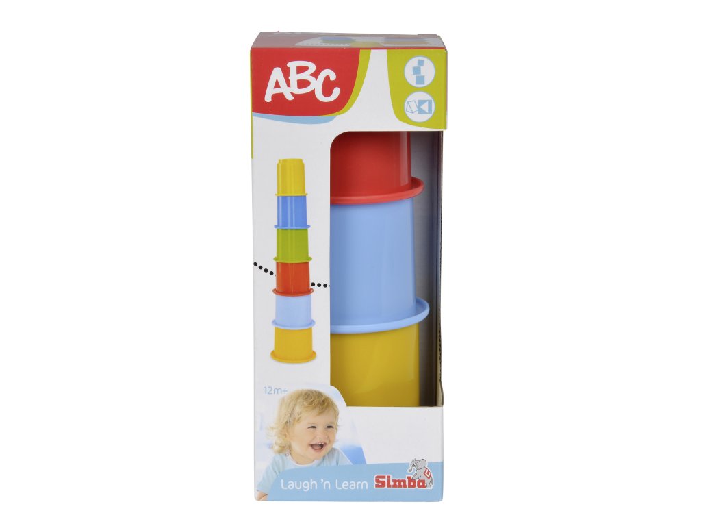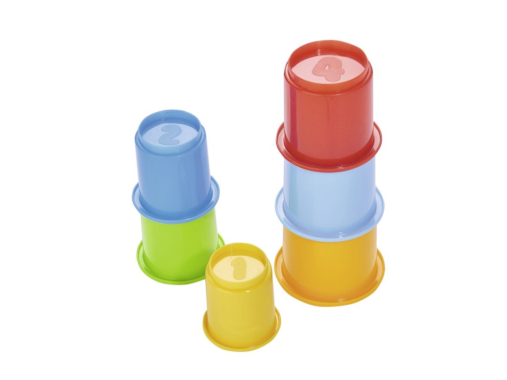 Plastové kelímky kulaté ve veselých barvách. 6 ks. Výška při sestavení pyramidy 39 cm.
