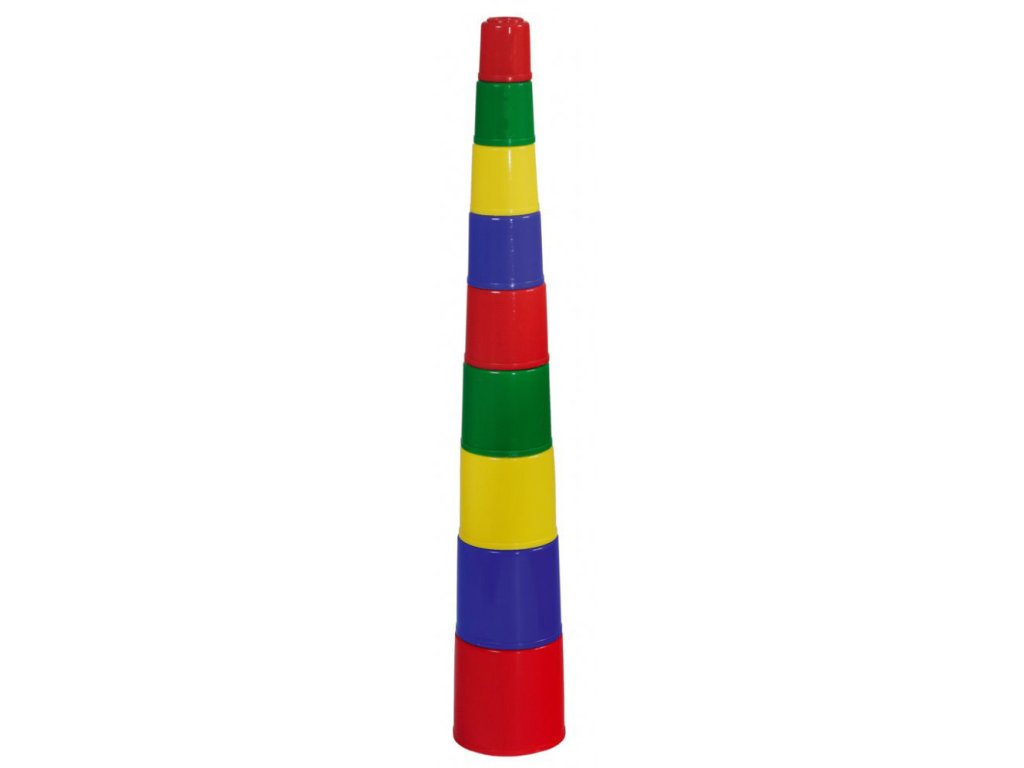 pyramida se skládá ze setu různě velkých a různě barevných kelímků