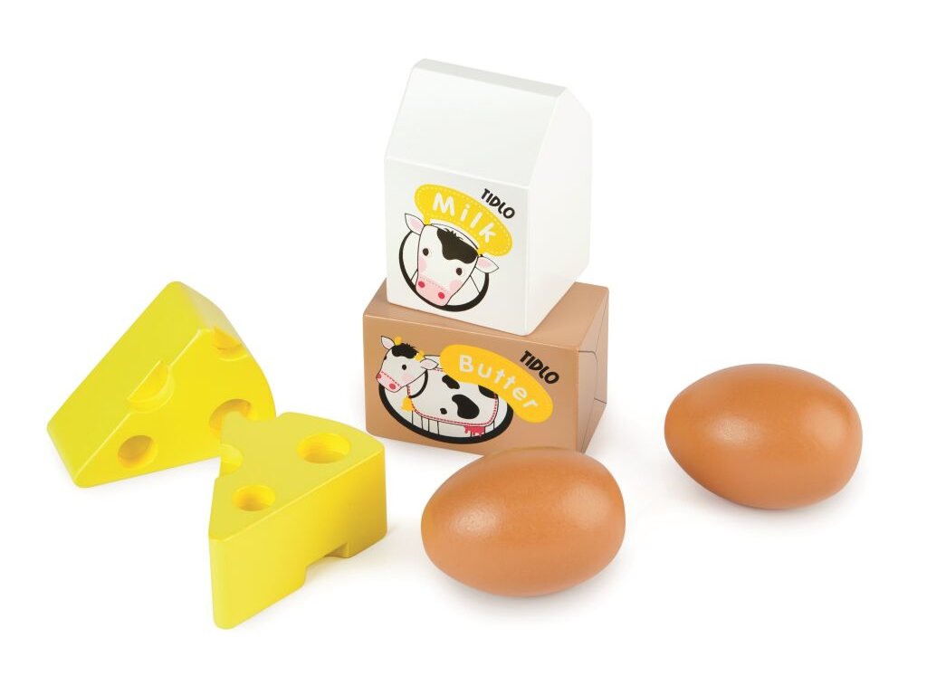 Čerstvá donáška vajec a mléčných výrobků přímo z farmy v dřevěném boxu s rukojeťmi. Skvělá hračka pro hru na obchodníky nebo kuchaře. Set obsahuje 2 vejce, 2 odřezky sýru, máslo a mléko. Skvělý způsob, jak děti naučit o důležitosti zdravé a vyvážené stravy, také o tom, odkud jídlo pochází a jak jej připravit. Každý z dílků je zavalitý a ideální pro malé dětské ruce. Podporuje kreativní a představivou hru. Vyrobeno z kvalitních materiálů z odpovědných zdrojů. Odpovídá evropské bezpečnostní normě.Hlavní vlastnosti:•ideální pro malé dětské ruce•podporuje kreativitu a představivost