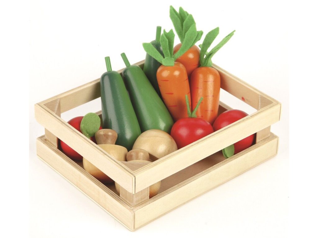 Tato nádherná sada dřevěné zeleniny má vše, co začínající mladí kuchaři potřebují k uvaření zdravého jídla. Sada obsahuje houby, mrkve, cukety a rajčata. Zelenina je dodávána v praktické dřevěné přepravce a je kompatibilní s obchodem a divadlem Tidlo. Vše je autenticky detailní. Tato hrací sada je ideální sadou pro každého začínajícího mladého kuchaře nebo obchodníka. Děti se mohou naučit a začít rozeznávat názvy potravin, které konzumují. Je to skvělý způsob, jak učit malé děti o důležitosti zdravé a vyvážené stravy, odkud pochází naše jídlo a jak připravujeme jídlo. Skvělý způsob, jak podpořit interaktivní a nápadité hraní rolí a rozvíjet sociální dovednosti a obratnost. Vyrobeno z vysoce kvalitních a zodpovědně pocházejících materiálů. Hlavní vlastnosti:•autenticky detailní•podporuje kreativitu a představivost