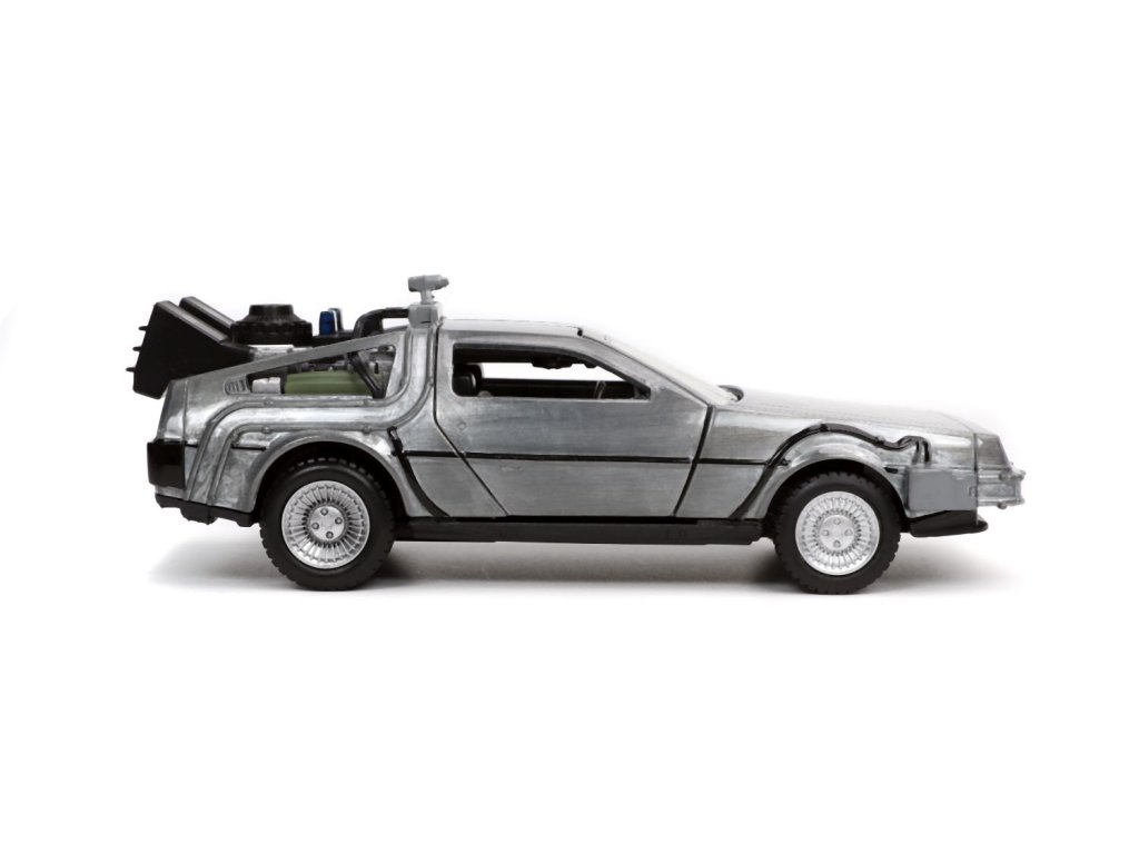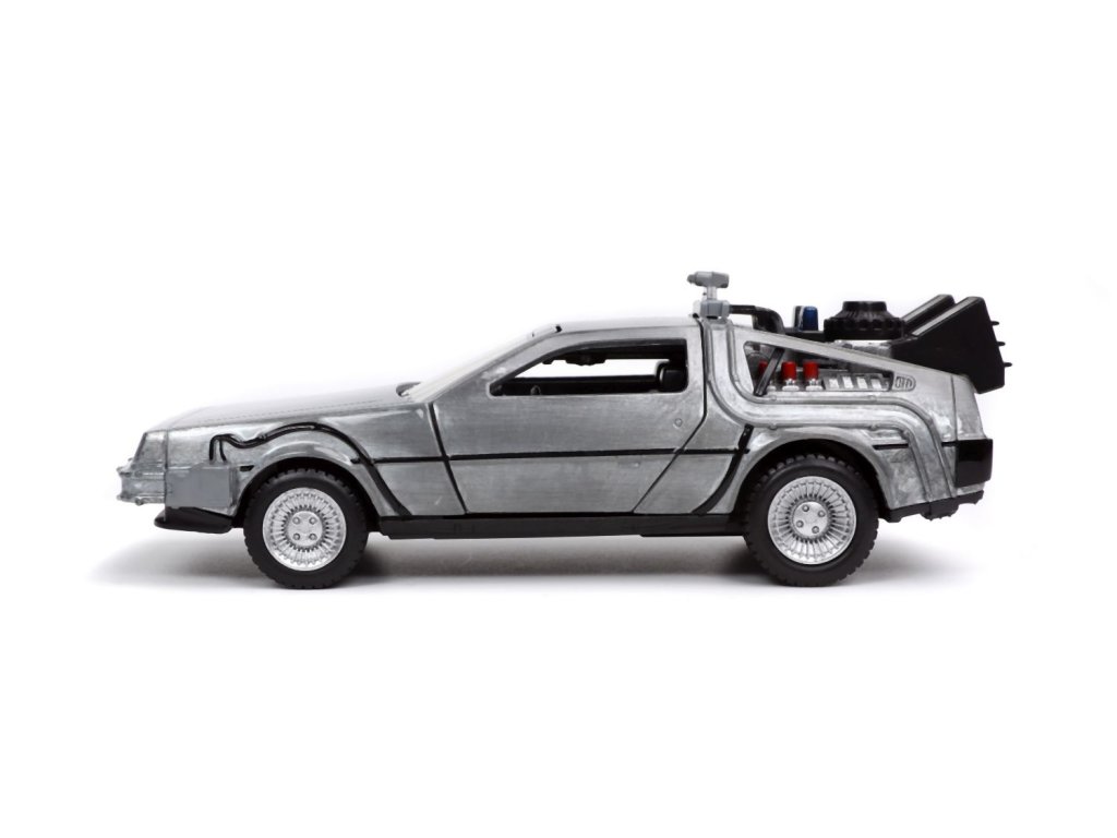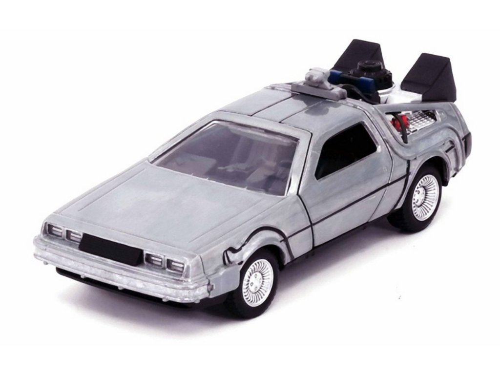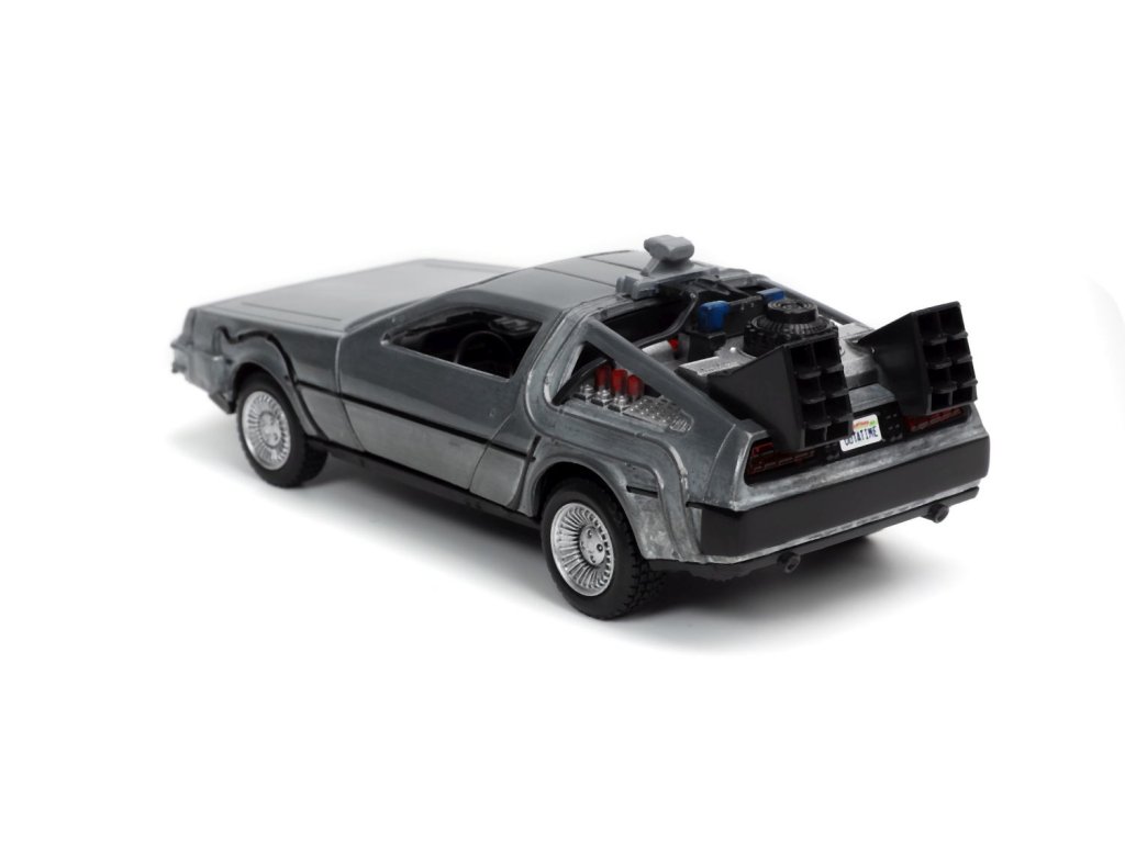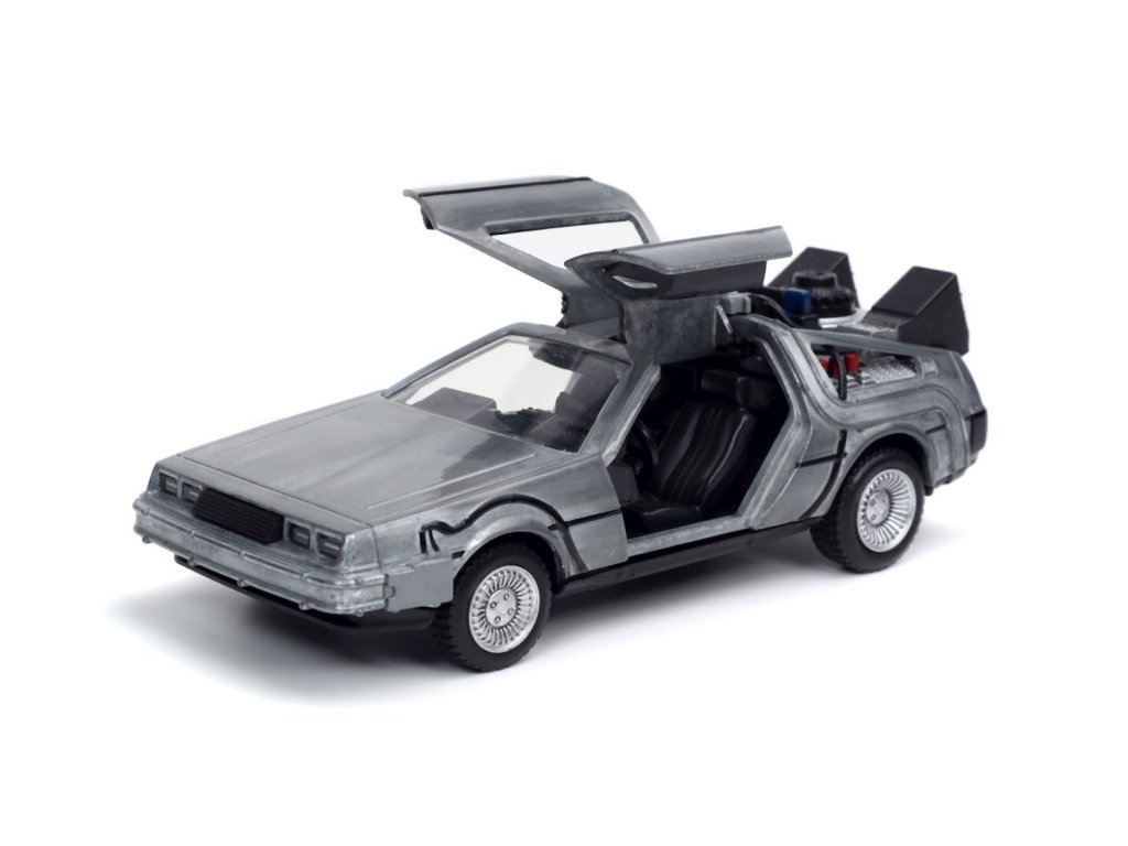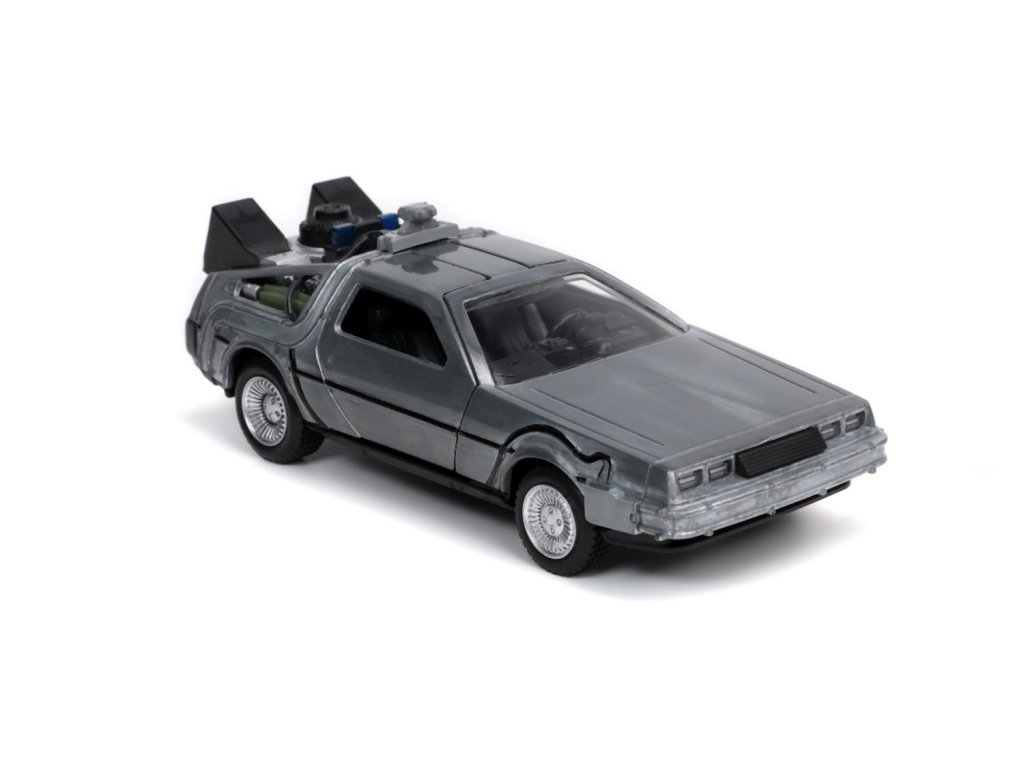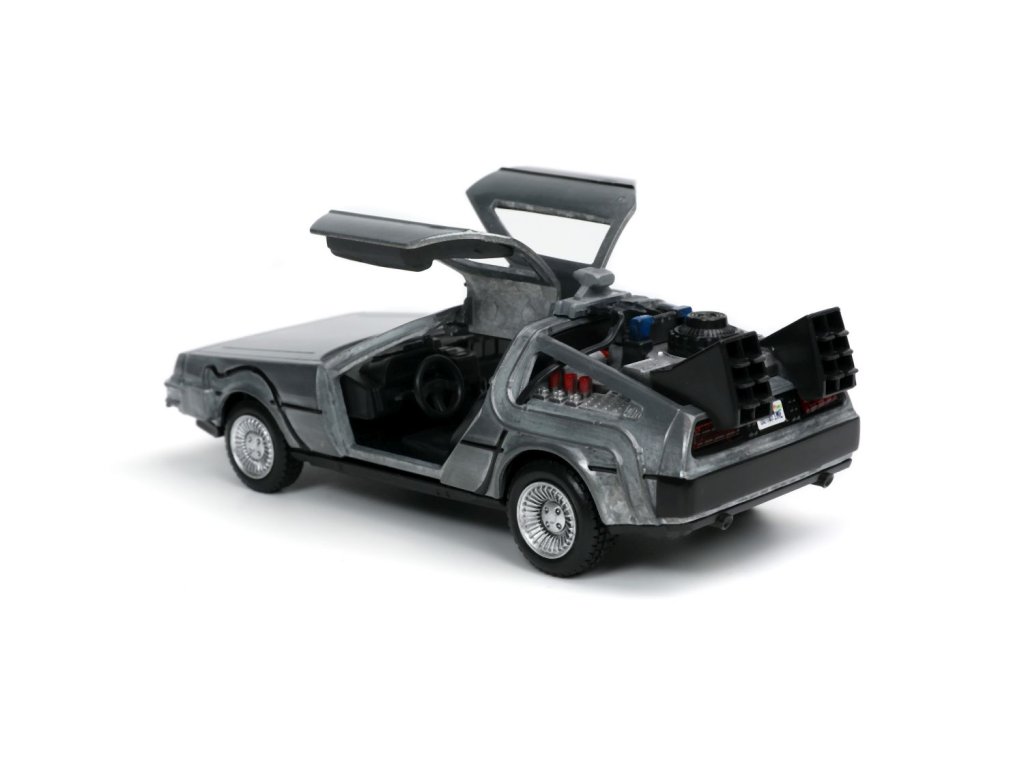 Kovový model Time Machine Back to the Future 1 na volnoběh v měřítku 1:32 s otevíracími dveřmi. Displej obsahuje 6 ks.