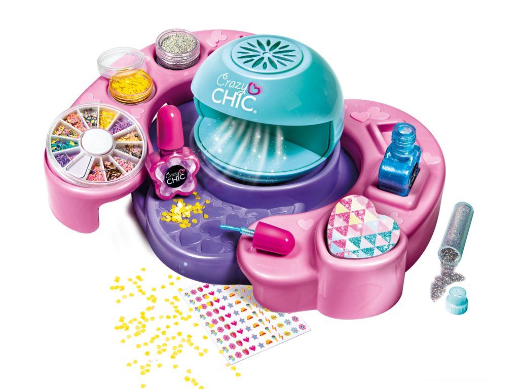 Nehtové studio pro všechna parádnice. Obsahuje sušič nehtů, třpytivý lak na nehty, ozdobné nálepky, korálky, třpytky. Vyžaduje 2x 1,5 V AA baterie, které nejsou součástí balení.