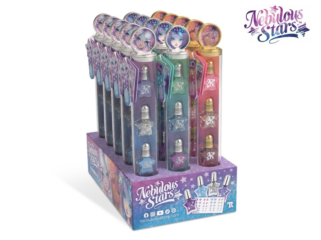 laky na nehty na vodní bázi, balení obsahuje 4 laky na nehty, 40 nálepek na nehty, pilník na nehty