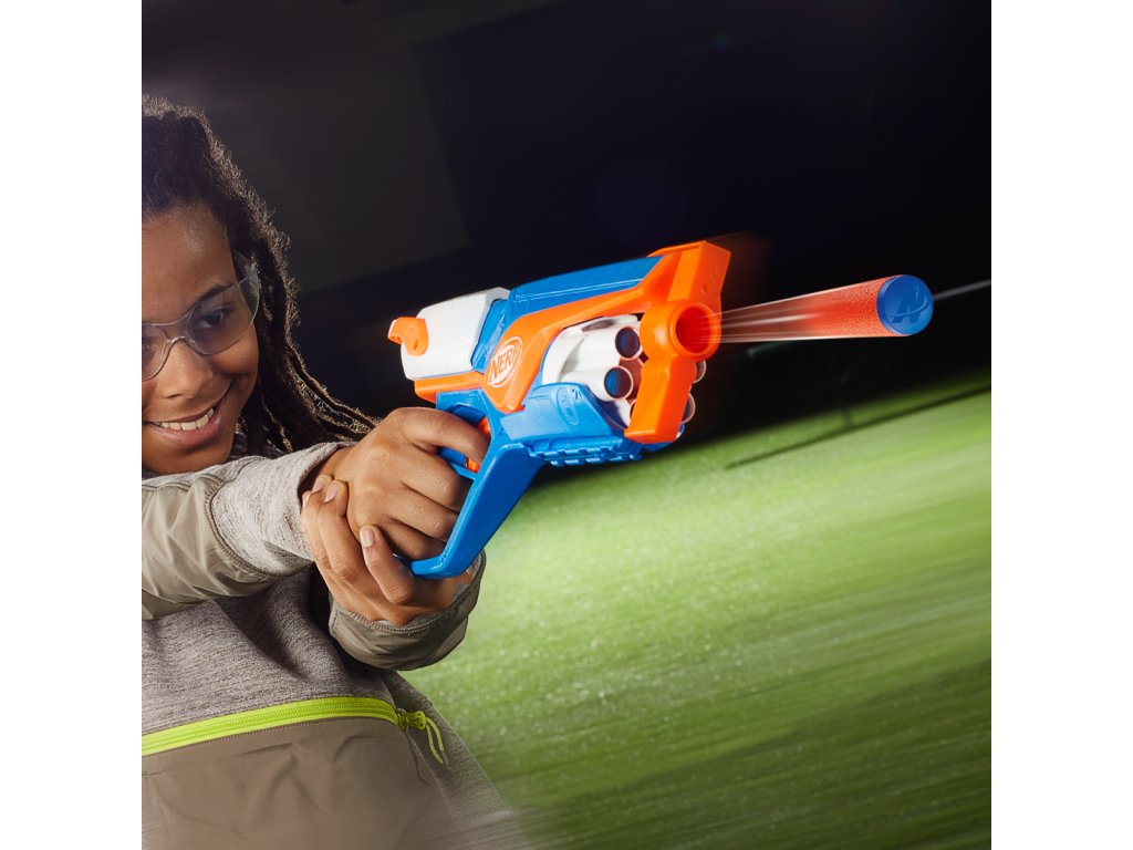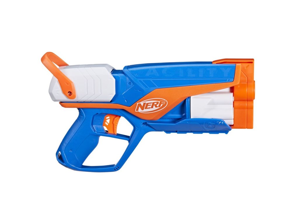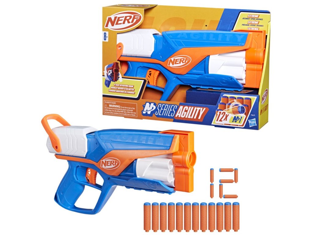 Pistole Nerf N Series Agility od Hasbro, se kterou jen tak nějaká hra neomrzí. Výkonný blastr navržený pro obratnost. Vyniká snadným nabíjením a vysokou přesností. Otočný zásobník pojme 6 šipek současně a jeho napnutí probíhá tahem za úchop. Součástí balení je 12 šipek. Hra s Nerf podporuje spolupráci, rychlé rozhodování a přesnou mušku. Hra s pistolí zajistí neopakovatelnou atmosféru a pořádnou dávku zábavy. Vyrobeno z kvalitního plastu. Při hraní je doporučeno, aby děti použily bezpečnostní brýle (nejsou součástí). Rozměr balení: 20,3 x 30,5 x 6,7 cm. Vhodné od 8 let.