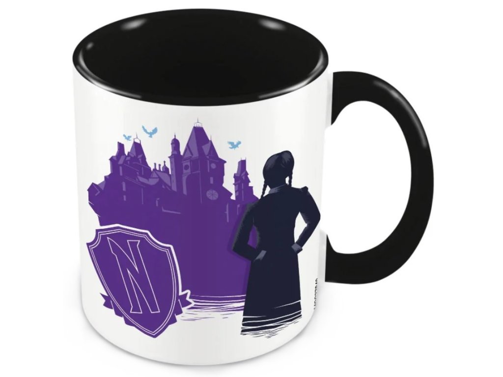 Oficiální produkt - keramický hrnek z katalogu výrobků s grafikou a licencí populárního amerického nadpřirozeného seriálu Wednesday od společnosti Netflix.