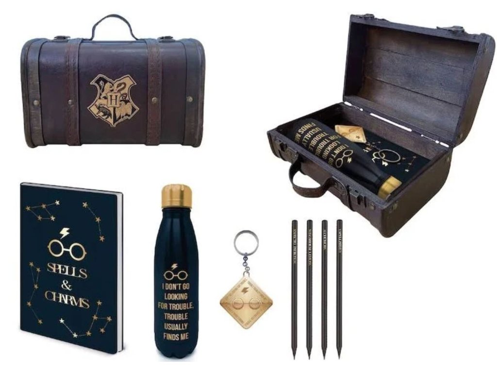 Dárkový set v truhle: cestovatelském kufříku s odnímatelným ramenním popruhem, motivy a znaky inspirované populární knižní a filmovou ságou Harry Potter. Dárkový set je vhodný dárek, který potěší všechny menší i větší fanoušky Harryho Pottera.